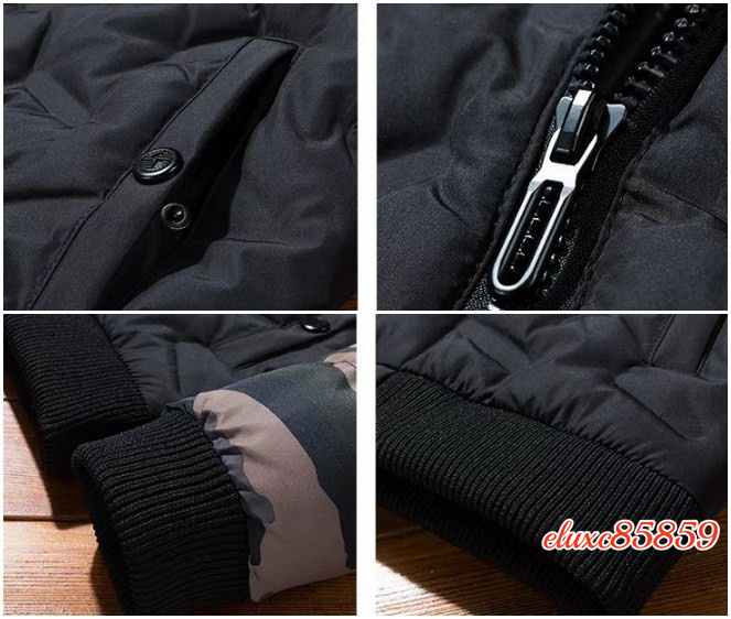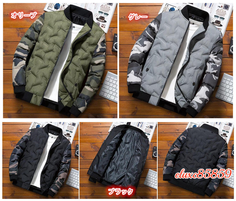 メンズ ダウン綿ジャケット 厚手 ベースボールネック 防寒 コート 冬 迷彩柄 ミリタリー ジャンパー ブルゾン アウター 細身 グレー XL