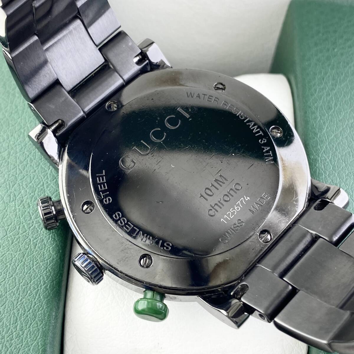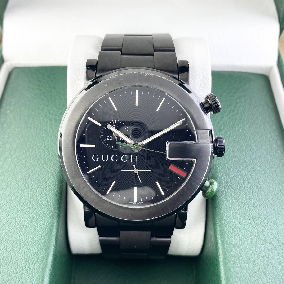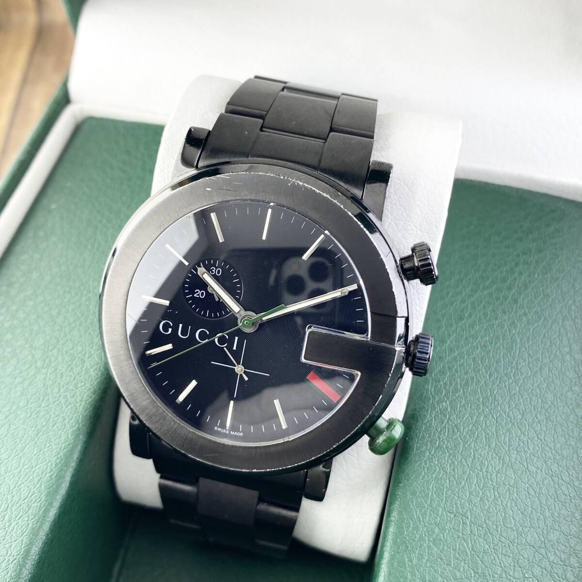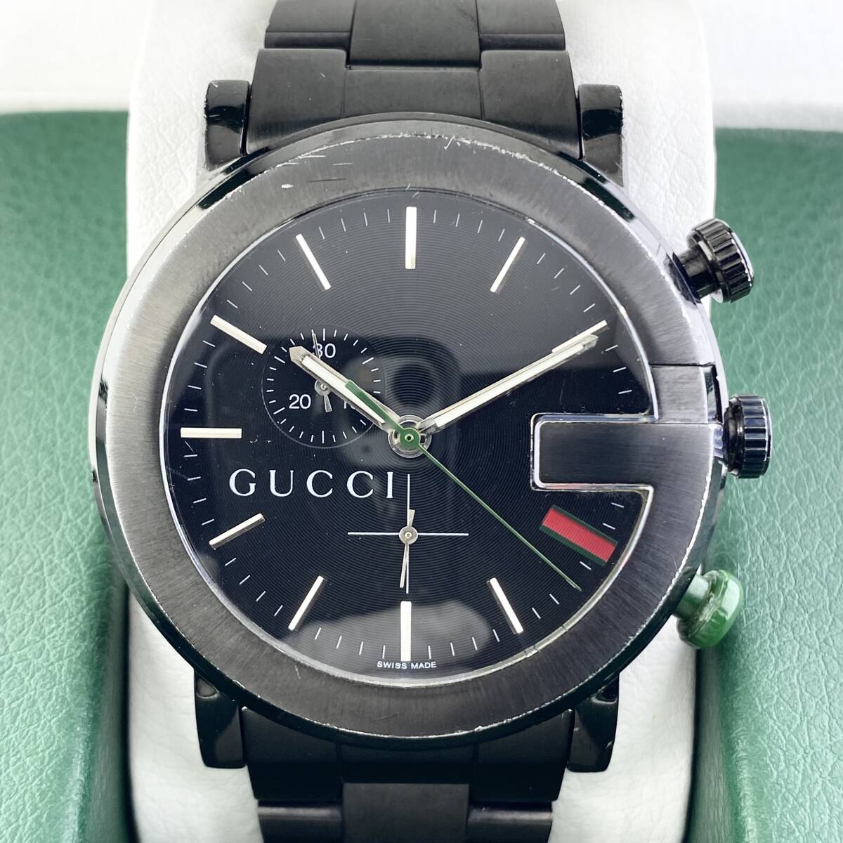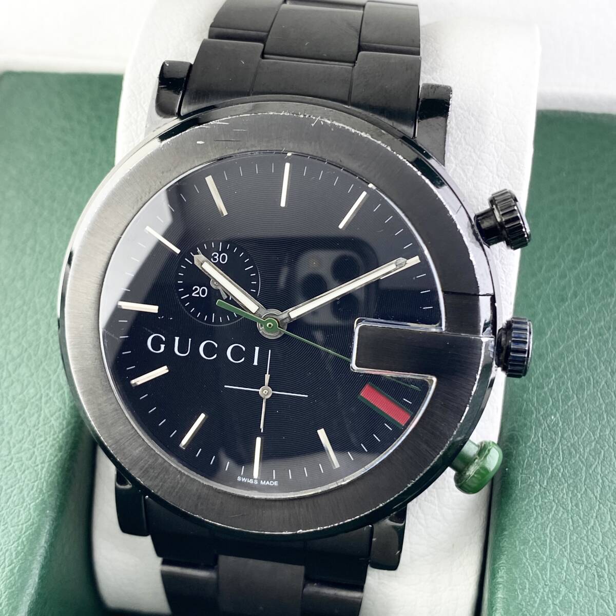 【1円〜】GUCCI グッチ 腕時計 メンズ 101M クロノグラフ ブラック文字盤 ラウンドフェイス シェリー デイト 可動品 | |||