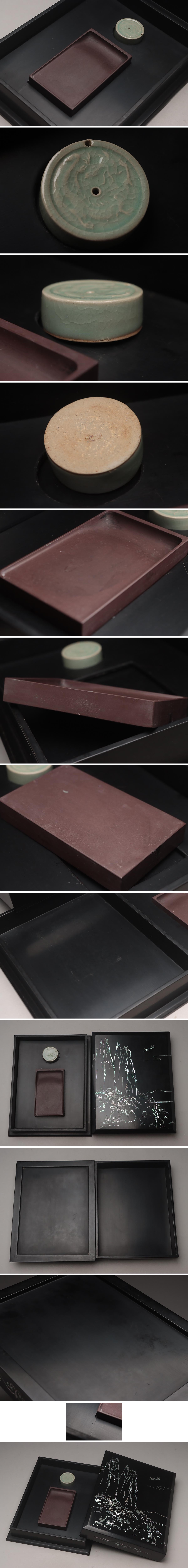 | ◆ 朝鮮美術 朝鮮螺鈿漆器 朝鮮螺鈿硯箱 縦28.3cm 青磁水滴/硯付・螺鈿山水図硯箱 書道具 検)李王家 ◆