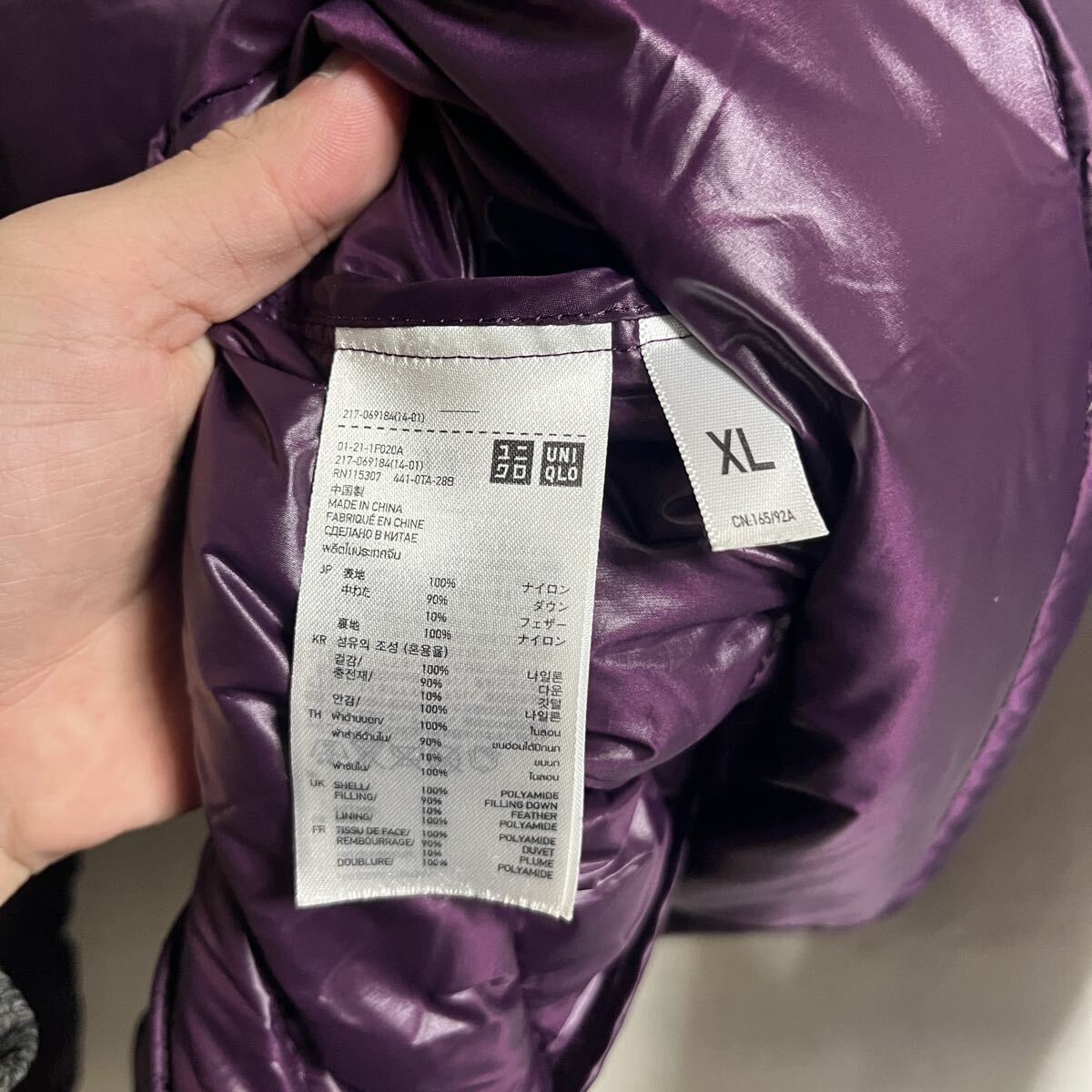 OK1211-3 ユニクロ UNIQLO ウルトラライトダウン ジャケット パープル XLサイズ 襟あり スタンドカラー ジップアップ レディース 軽量 定番