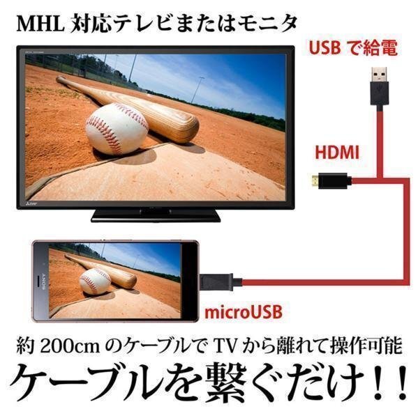 ◆HDMI変換ケーブル 1080P対応 2m microUSB-HDMI変換 スマホの画面をテレビで 給電用USBケーブル付 MHL 5pinタイプ専用 MD5PIN/5PIN