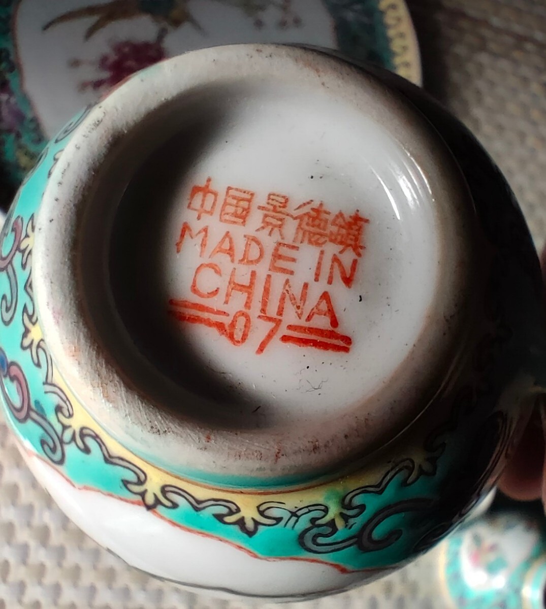 こちらは 中国製 景徳鎮風デザインの花鳥図ティーセット になります。