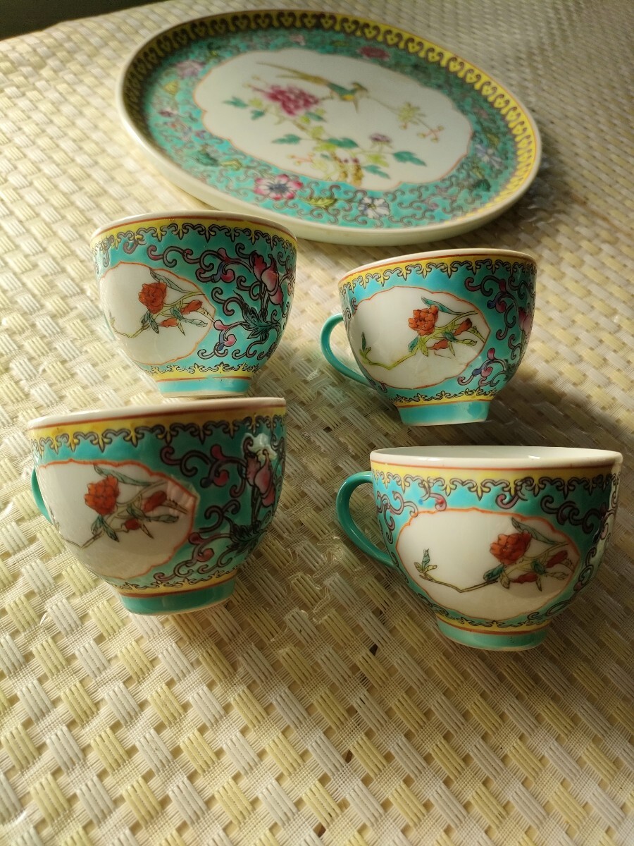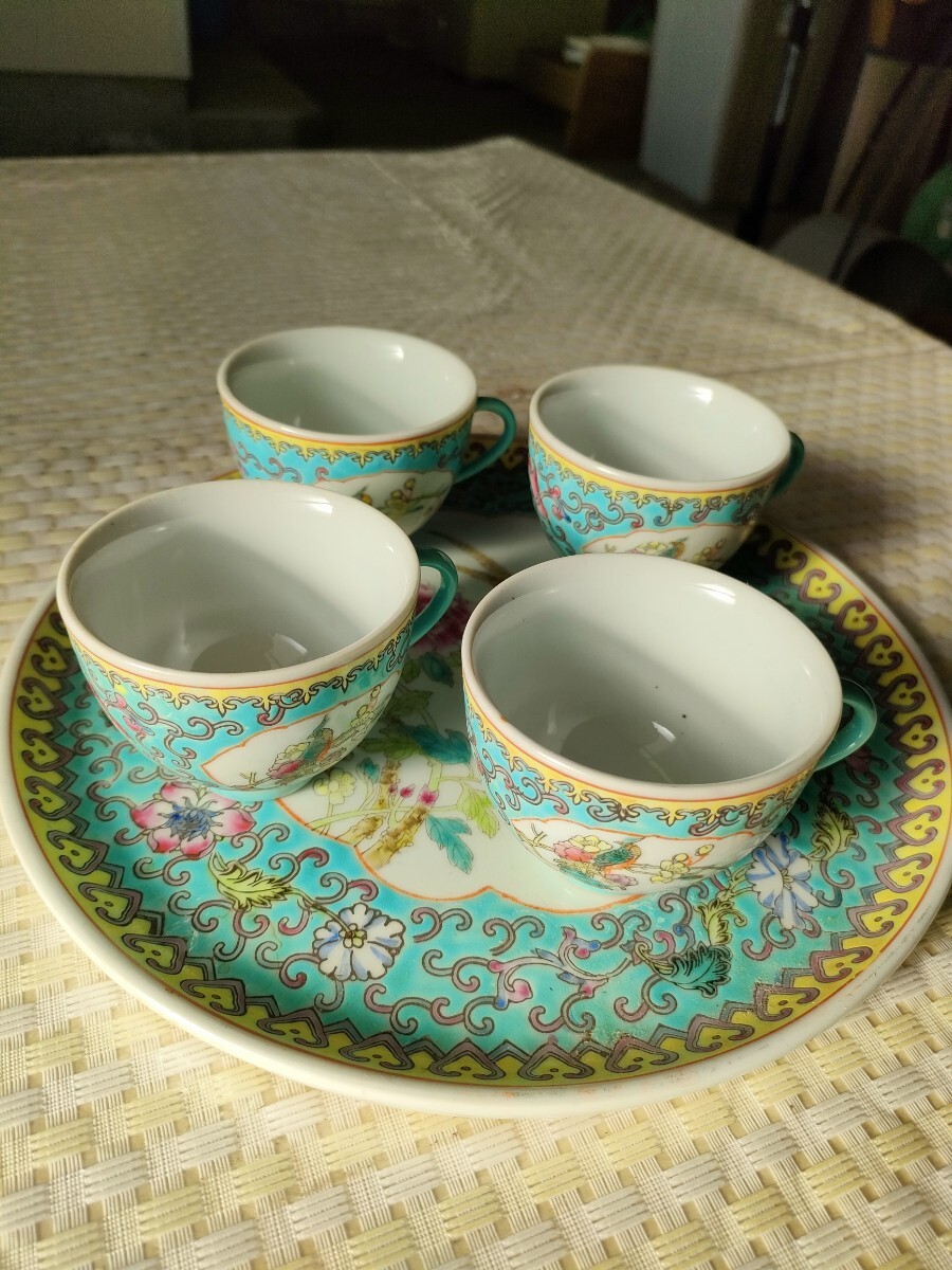 カップ4客と大皿(ソーサー兼トレイ)が揃ったセットです。