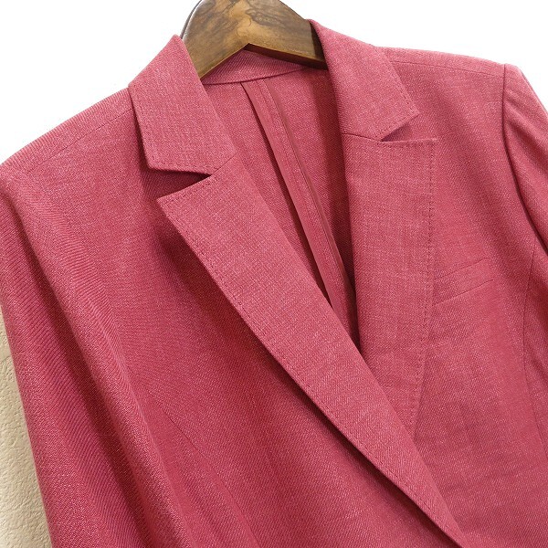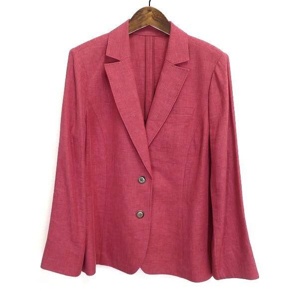 #s レリアン Leilian ジャケット 13号 ピンク系 麻混 シルク混 エルメネジルドゼニア イタリア製生地 大きいサイズ レディース [956010]
