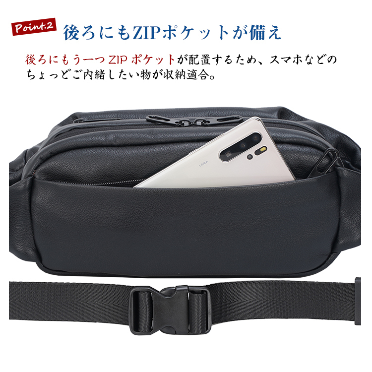 バッグ前後とメインポケットが総計4つを配置され、入れ物が分けに分類整理ができます。モバイルバッテリー、長財布、スマホなどよく使う物を収納可能、普段に実用性がたっぷり!