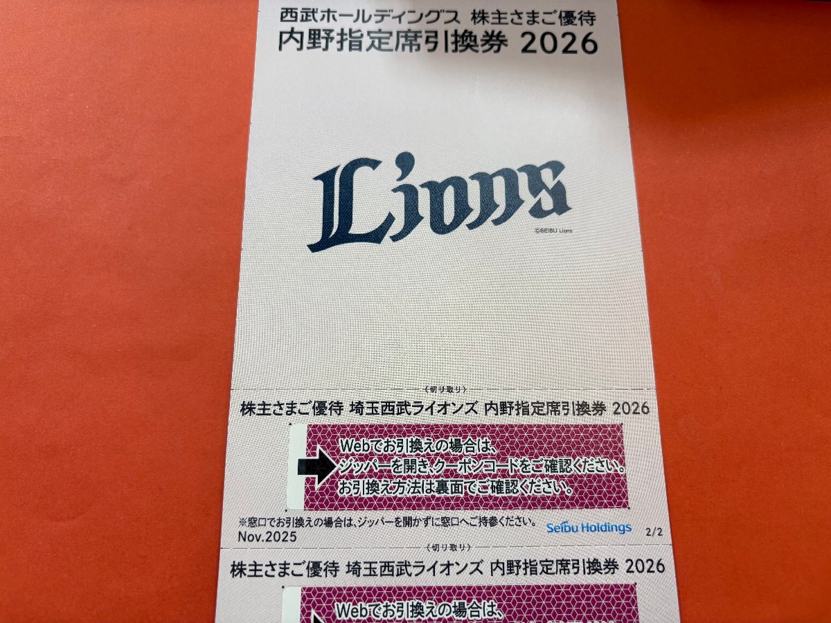 2枚綴り☆西武ホールディングス株主優待券・内野指定席引換券2026☆冊子無し♪