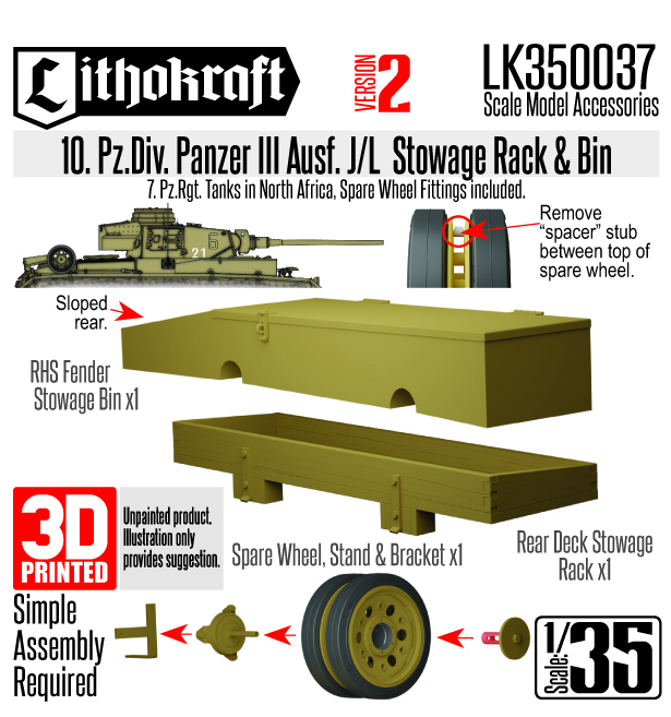 Lithokraft LK350037 1/35 10 PzDiv Pz III Ausf J/L Stwge Rack & Bin Ver.2