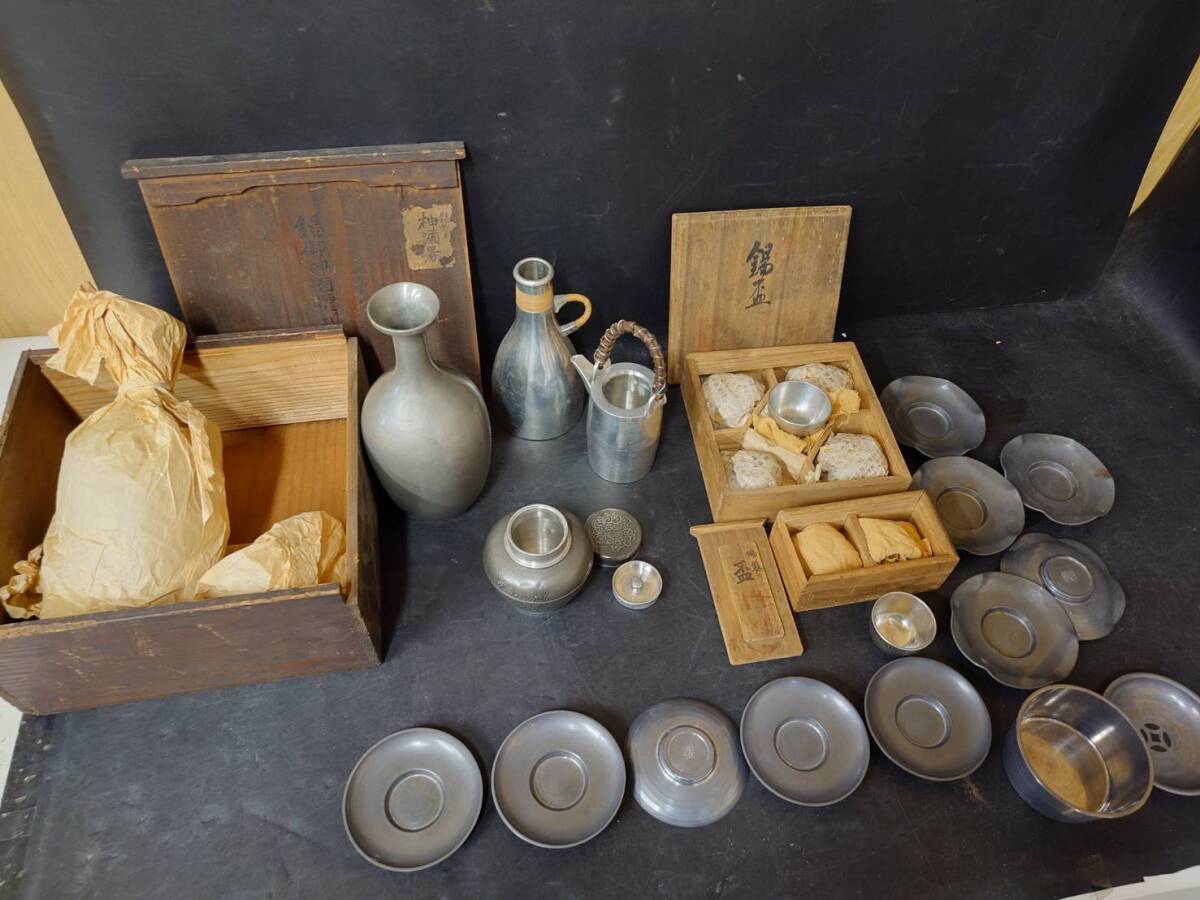 錫製品 工芸品 盃 茶壺 茶筒 茶托 古錫 レトロ