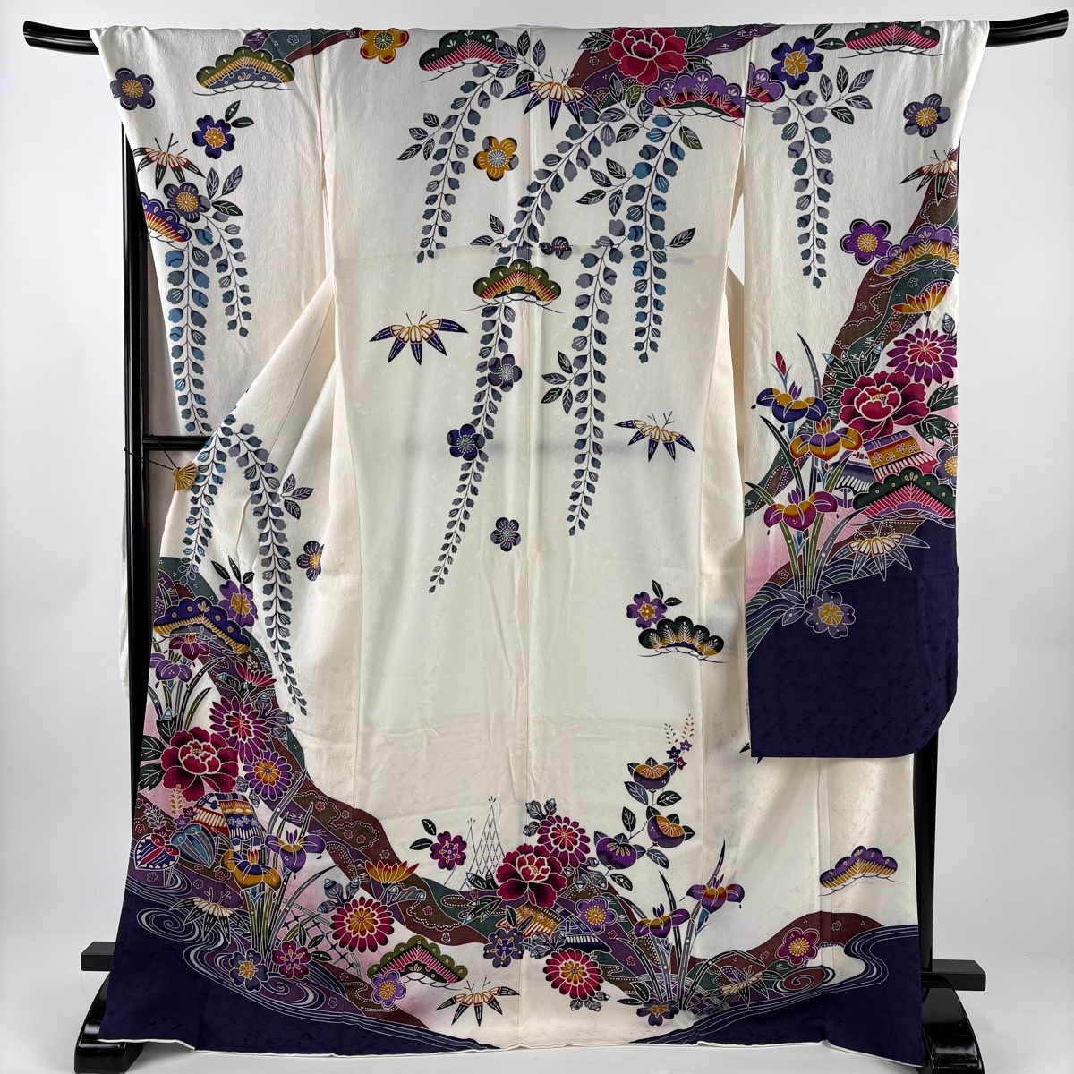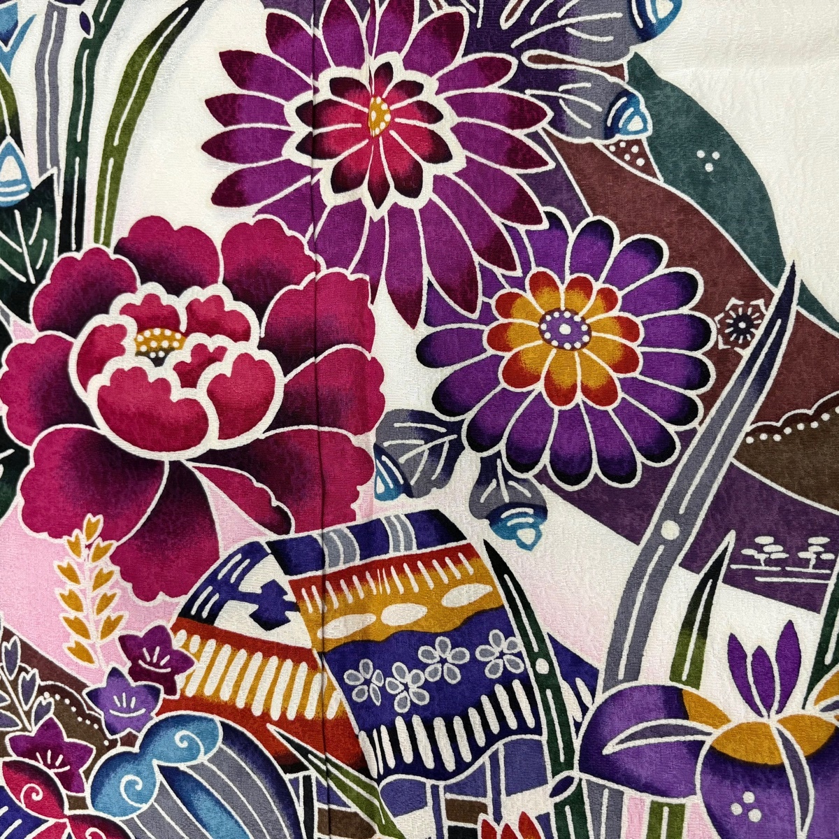 | 振袖 名品 草花 家屋 染め分け ぼかし クリーム 袷 身丈172.5 裄丈71.5 L 正絹 【中古】 |