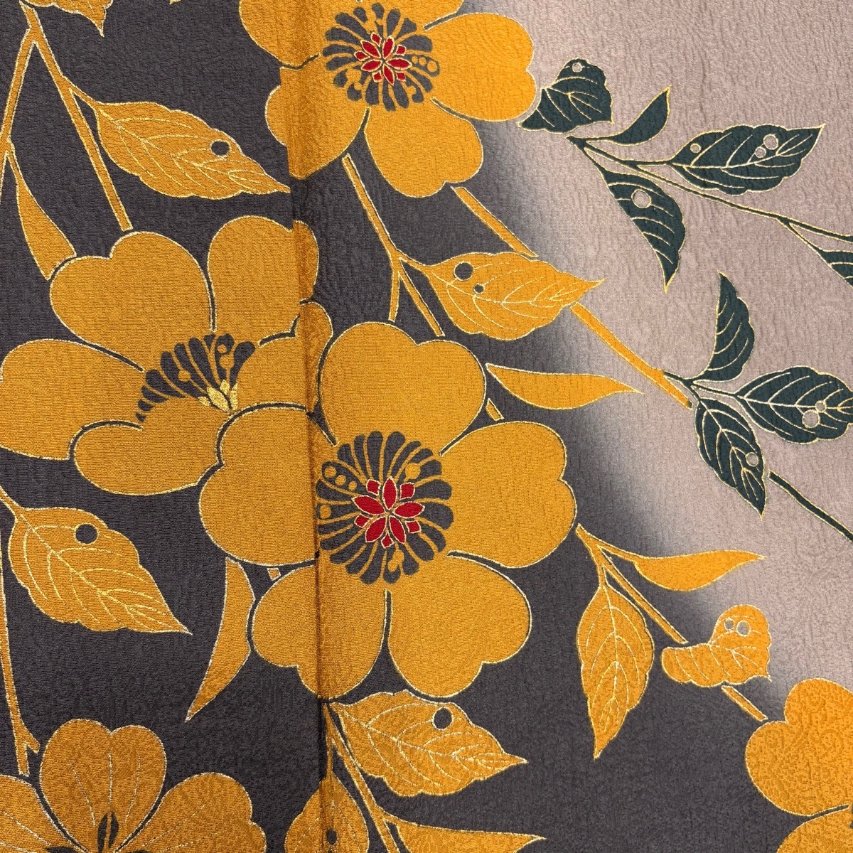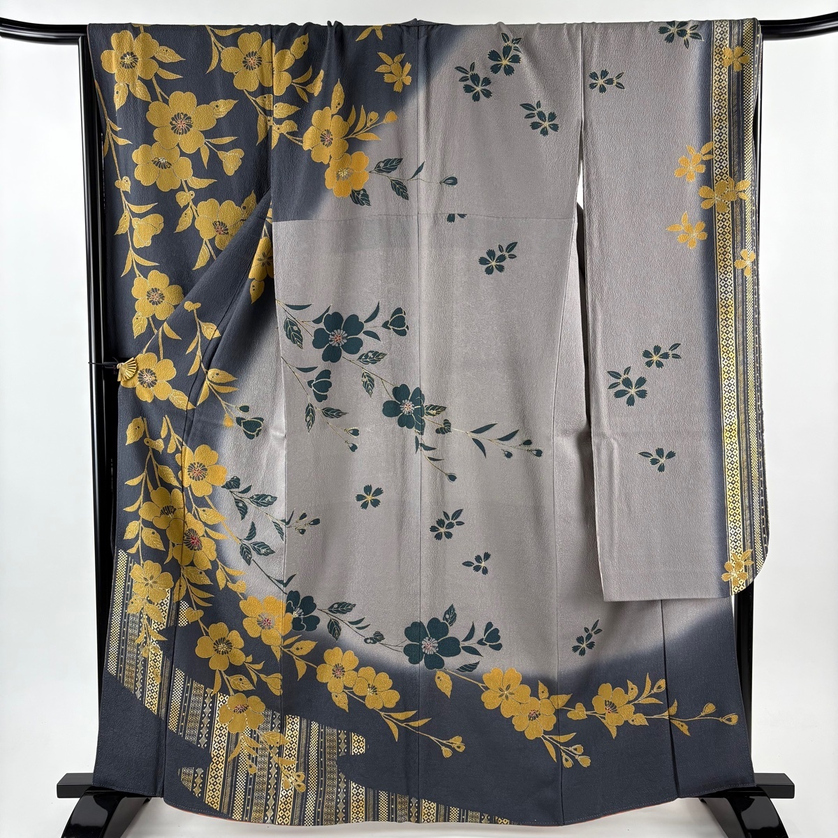 | 振袖 秀品 桜 菱 金彩 染め分け 灰色 袷 身丈163.5 裄丈71 L 正絹 【中古】 |