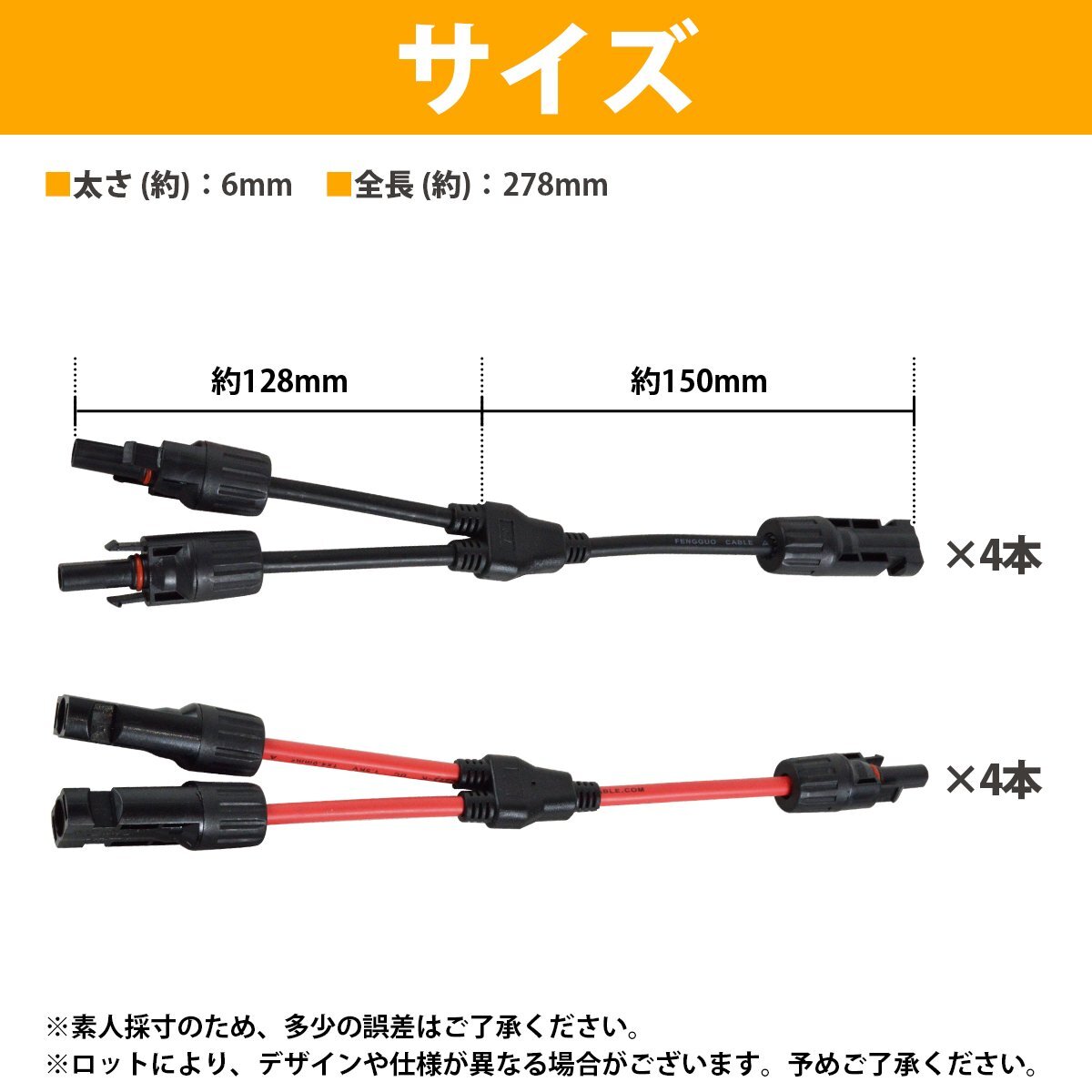 『4セット 8本』Y型 並列用 2分配 並列 分岐 MC4 接続 ケーブル コネクター ソーラーパネル用 オス/メス プラス/マイナス 8個