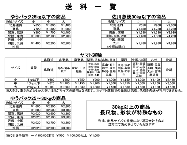 ■発送は北海道からになります こちらの商品はサイズ【 中 】になります。 【ヤマト宅急便】【佐川急便30kg以下】【ゆうパック】より発送方法をお選びください。 ![]() ※佐川急便で沖縄、離島へ発送の場合は別途中継料が発生いたします。 地域や商品サイズによって中継料は異なります(目安:¥1,512~¥3,132) 別途お問い合わせくださいませ。 |