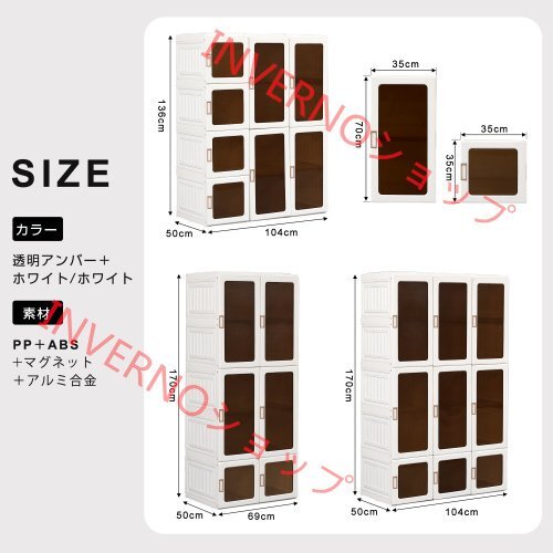 • 【選べる2カラー】●透明アンバー+ホワイト ●ホワイト 【選べる3サイズ】● 5段x3列(3ハンガー) 幅104x高さ170cm ●4段x3列(2ハンガー)幅104x高さ136cm※上部2段可動棚 ●5段x2列(1ハンガー)幅69x高さ170cm※上部3段可動棚