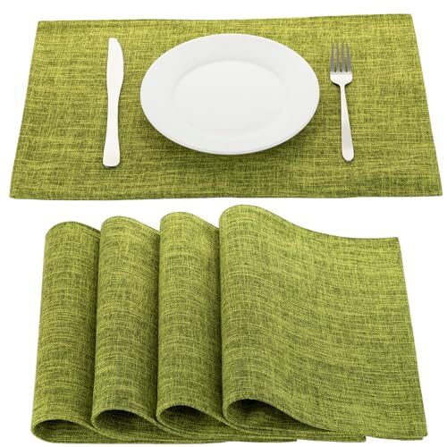 Senteria ランチョンマット布製 綿麻 マット 二層生地縫製 無地 和風 柔軟性 断熱 滑り止め お手入れ簡単 丸洗い キッチン 家庭用 レストラン用 4枚セット(グリーン)