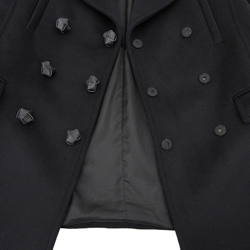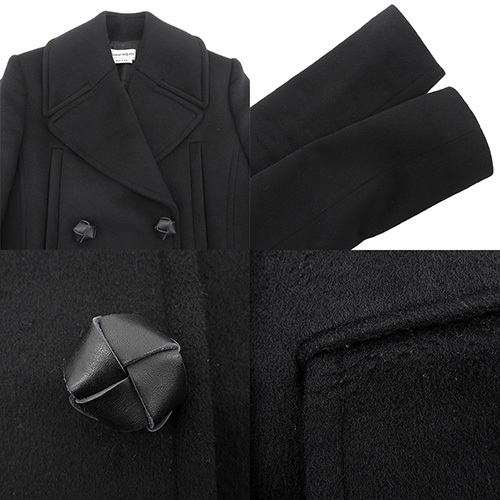 レザーボタンに薄いスレとシワあり。全体所々に毛羽立ちあり。