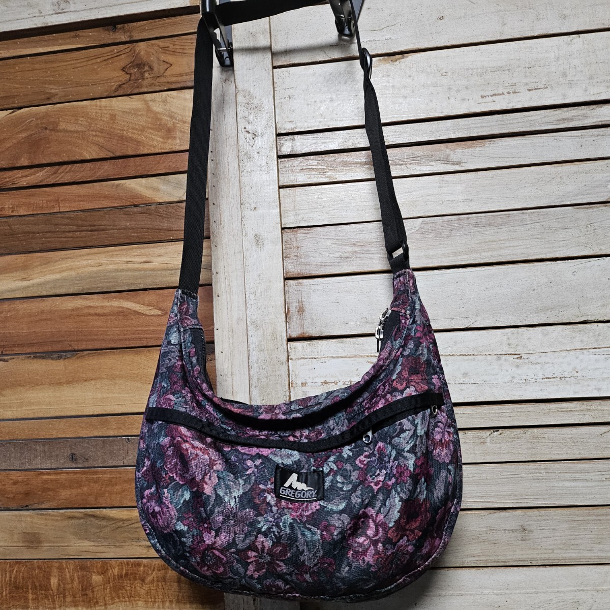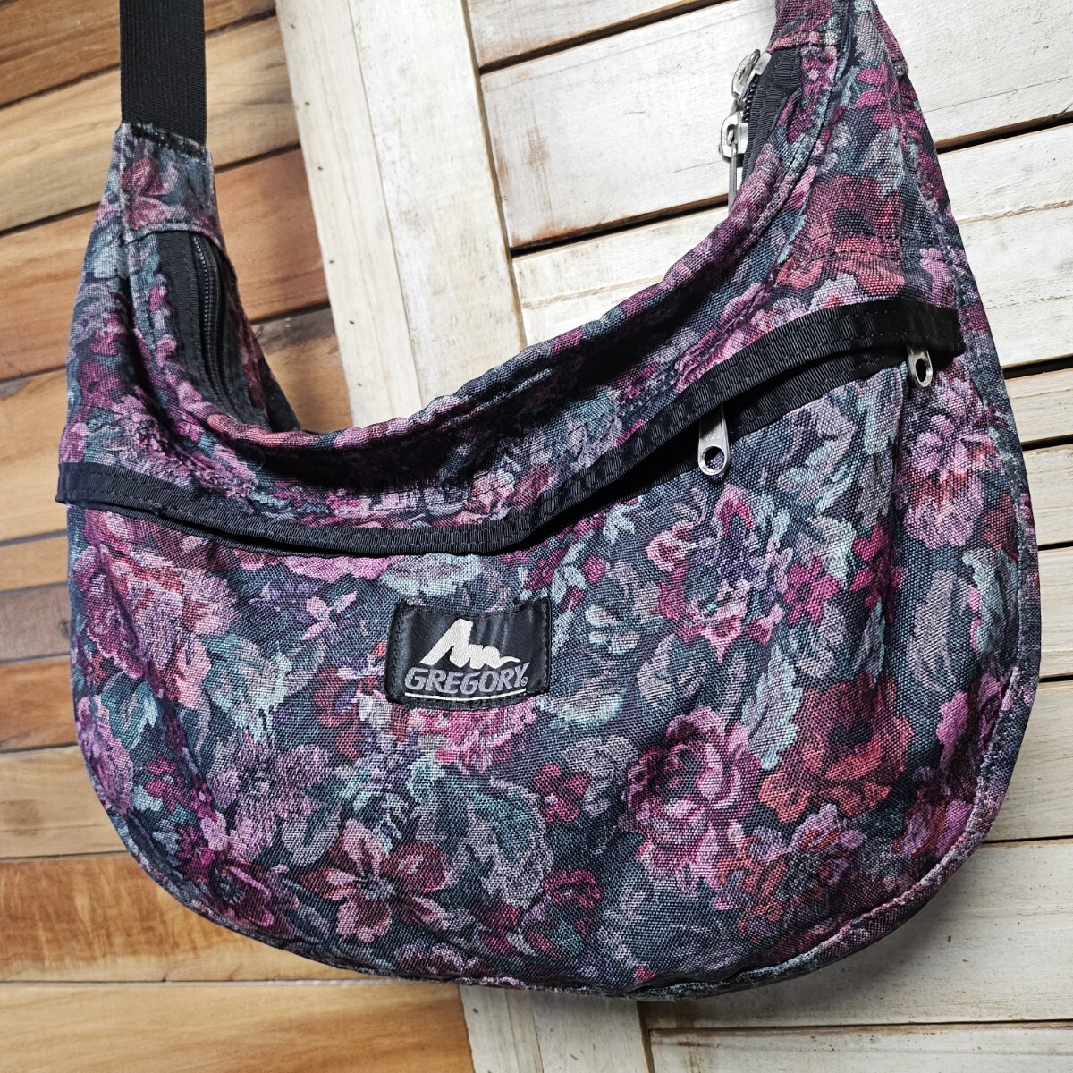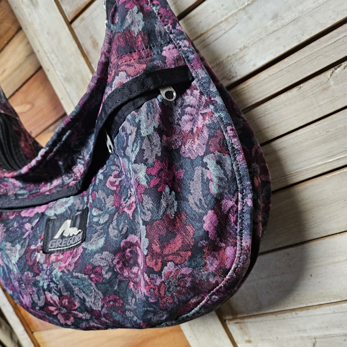 USA製 グレゴリー ラフィンバッグ サッチェル gregory 花柄 フローラルタペストリー アメリカ製 旧タグ 三日月型バッグ ショルダーバッグ M