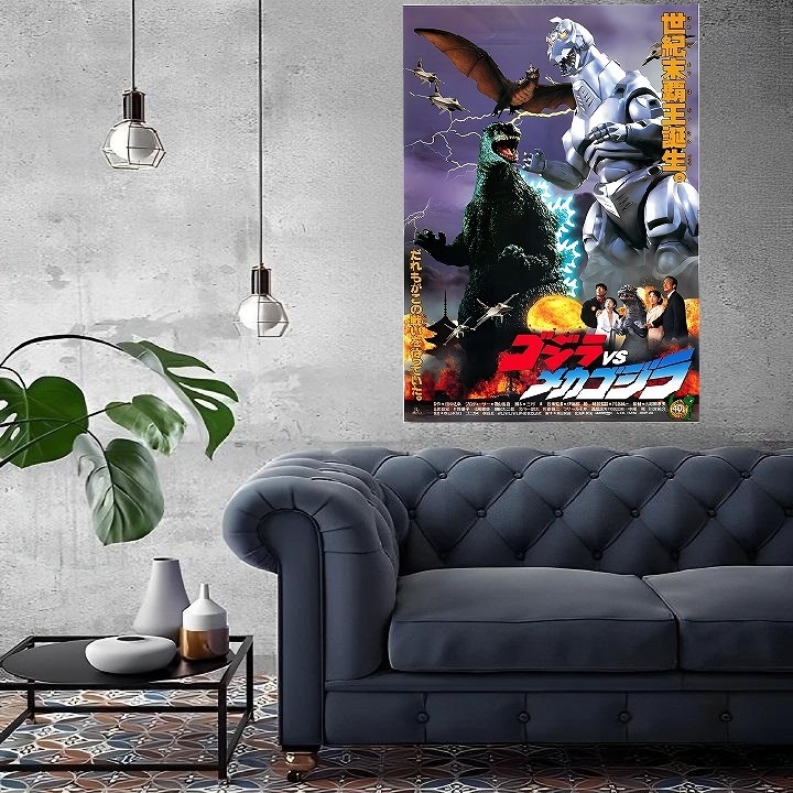 新品 ゴジラ メカゴジラ ポスター タペストリー 壁掛け パネル // 昭和 レトロ インテリア