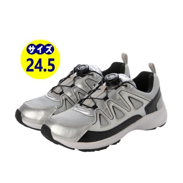 ダイヤル式 スニーカー シルバー 24.5cm 25876-slv-blk-245 ワンタッチで脱ぎ履き簡単 運動靴 通学靴 ランニングシューズ 男の子
