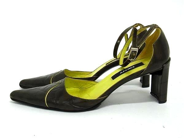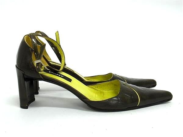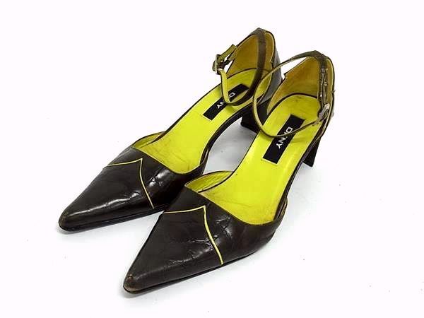 DKNY ダナキャランニューヨーク クロコダイル型押しレザー ヒール パンプス 表記サイズ6(約24cm) 靴 シューズ ブラウン系 DI6911