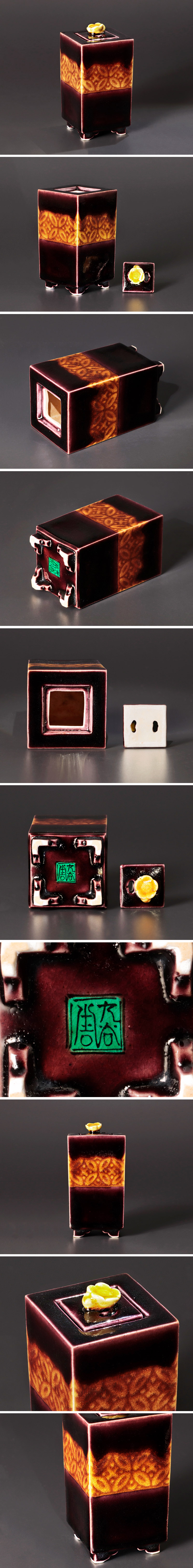 深厚釉の豊かな色合いに引き込まれるような趣があり、摘みに添えられた黄色い花が愛らしく、全体にあたたかみを感じさせる作品です。 ★商品は初代徳田八十吉の作品である事を保証致します。 |