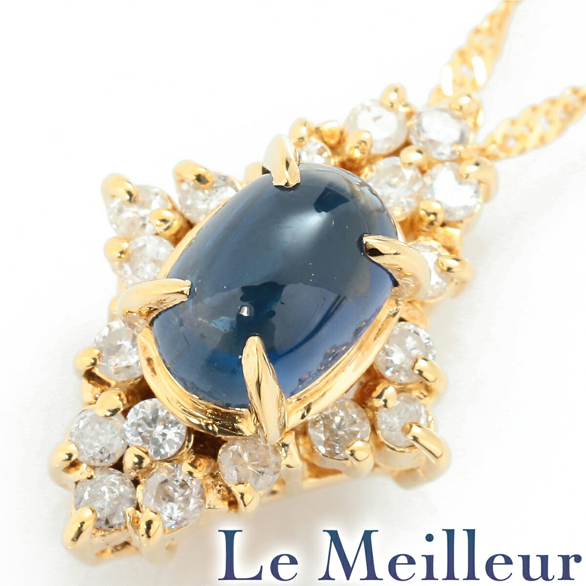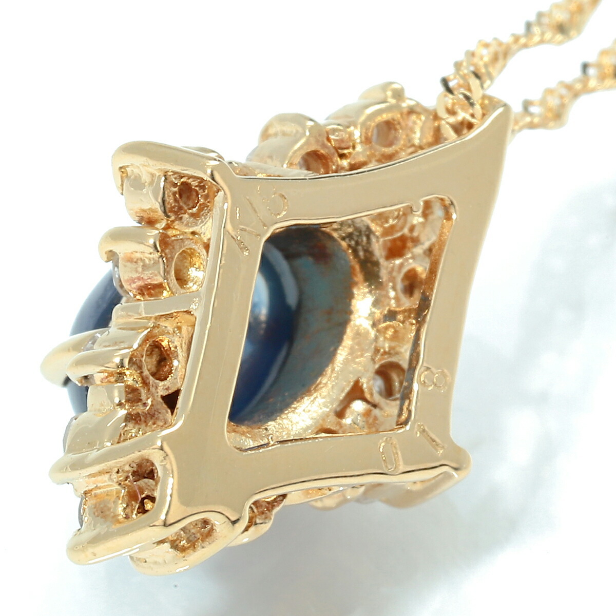 デイリー 普段使い カラーストーン 色石 キラキラ クラシカル エレガント ひし形 天然 サファイヤ 9月 誕生石 スクリューチェーン 引き輪 18金 20代 30代 40代 50代 60代 70代 USED ユーズド 中古 リユース ネックレス LEM6131