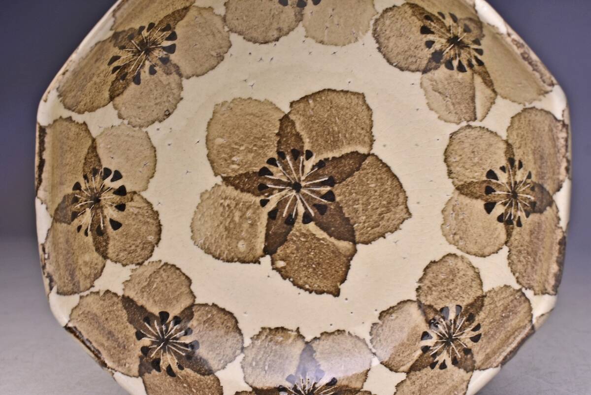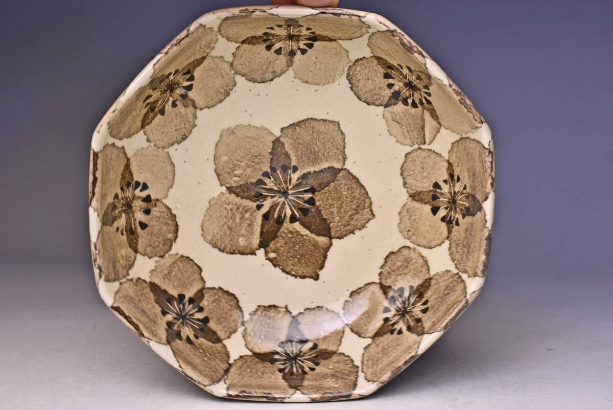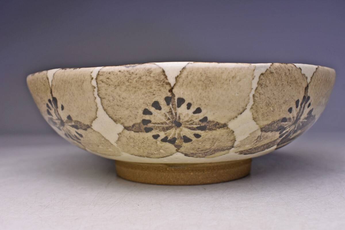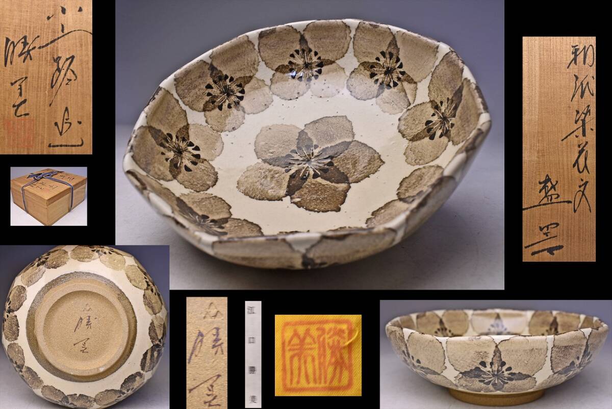 サイズは 200mmx高さ72mm です。 県の無形文化財保持者の ベテラン 江口勝美 氏の 作品です。 連続模様のおもしろい 鉢です。 宅配便100サイズにて発送します。 他にも多数出品してます。 同梱いたします。