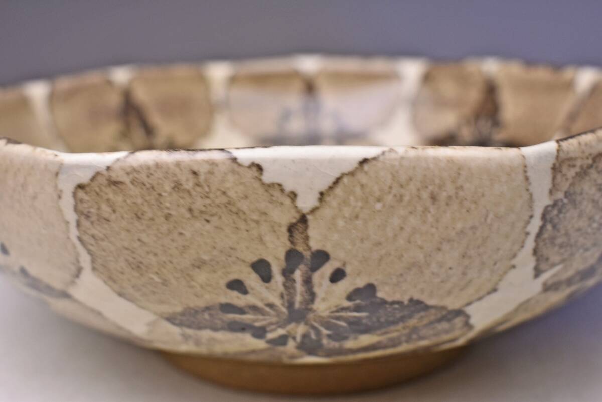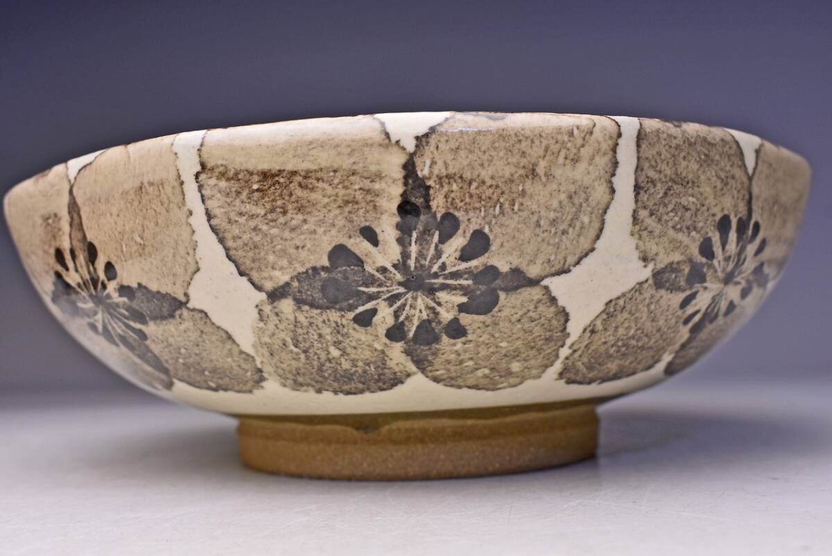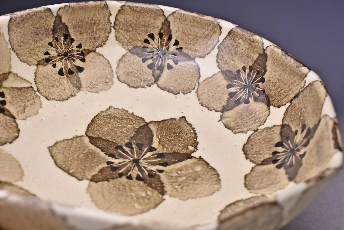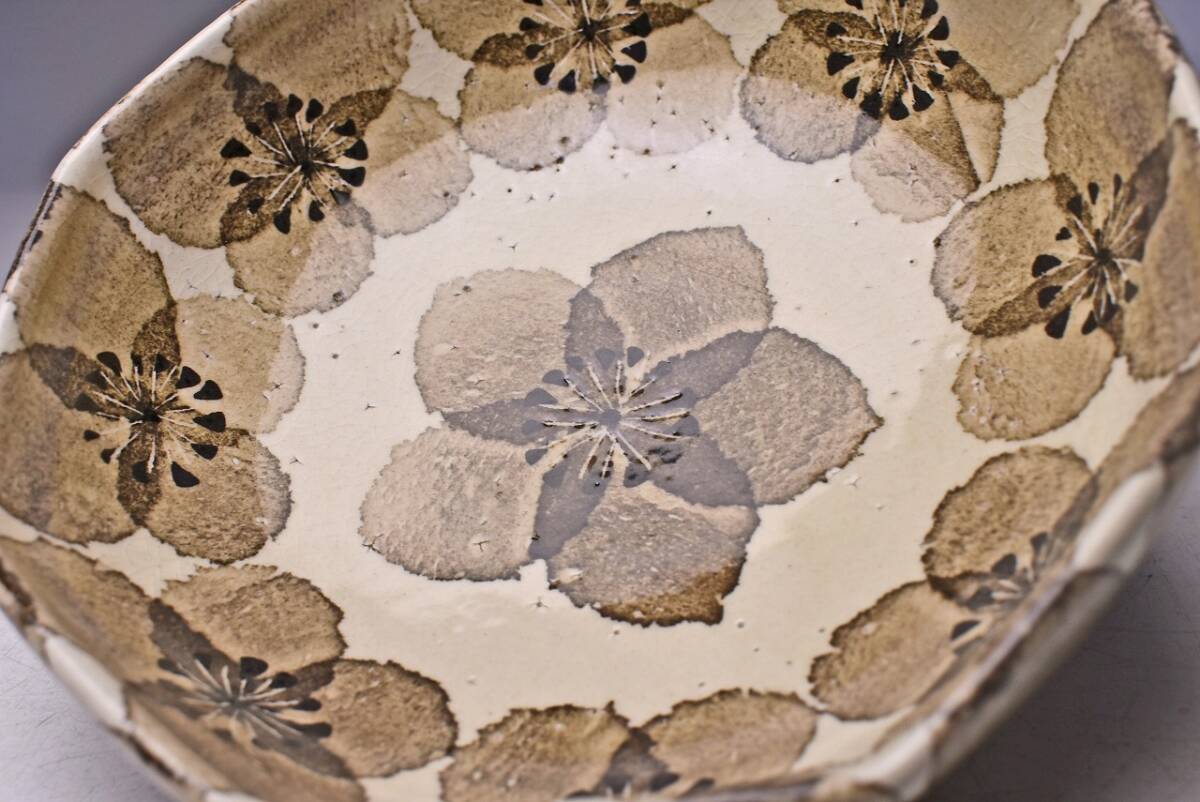 サイズは 200mmx高さ72mm です。 県の無形文化財保持者の ベテラン 江口勝美 氏の 作品です。 連続模様のおもしろい 鉢です。 宅配便100サイズにて発送します。 他にも多数出品してます。 同梱いたします。