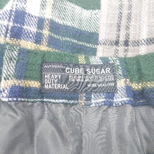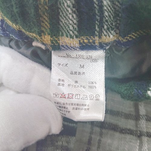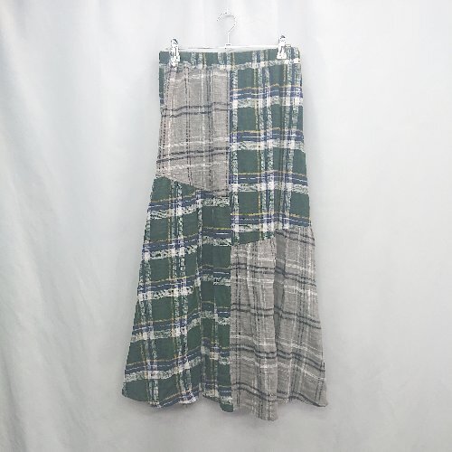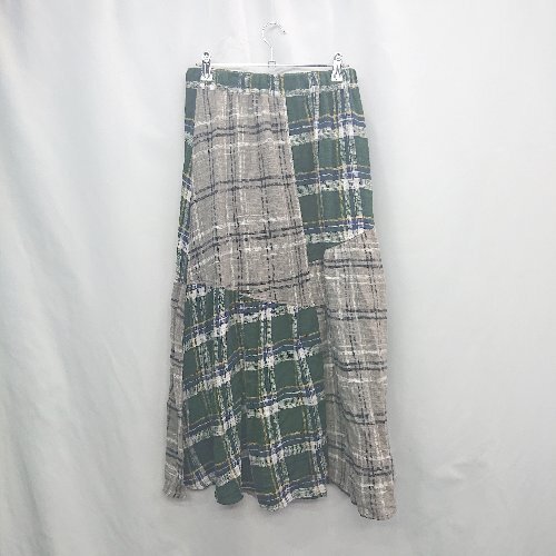◇ ⊇ CUBE SUGAR チェック柄 ウエストゴム ロング丈 フレア スカート サイズM グリーン グレー系 レディース E