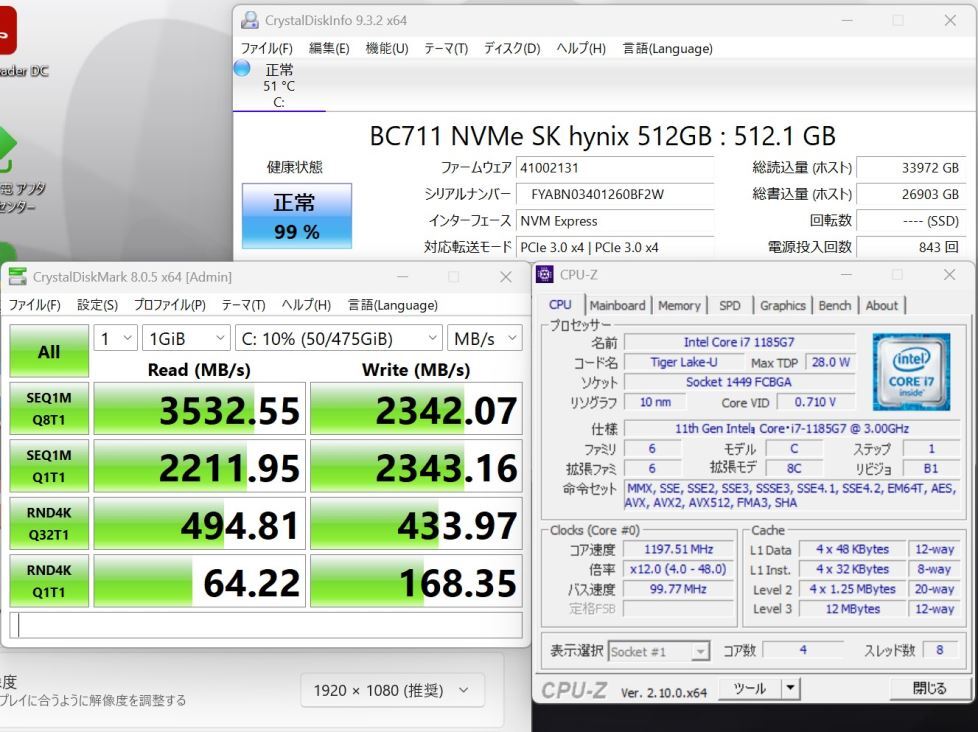 | CPU: 超高速 Intel 卓越性能 第11世代Core i7-1185G7 3.0Ghz、 4コア8スレッド (ターボ・ブースト利用時の最大周波数 4.8GHz) |