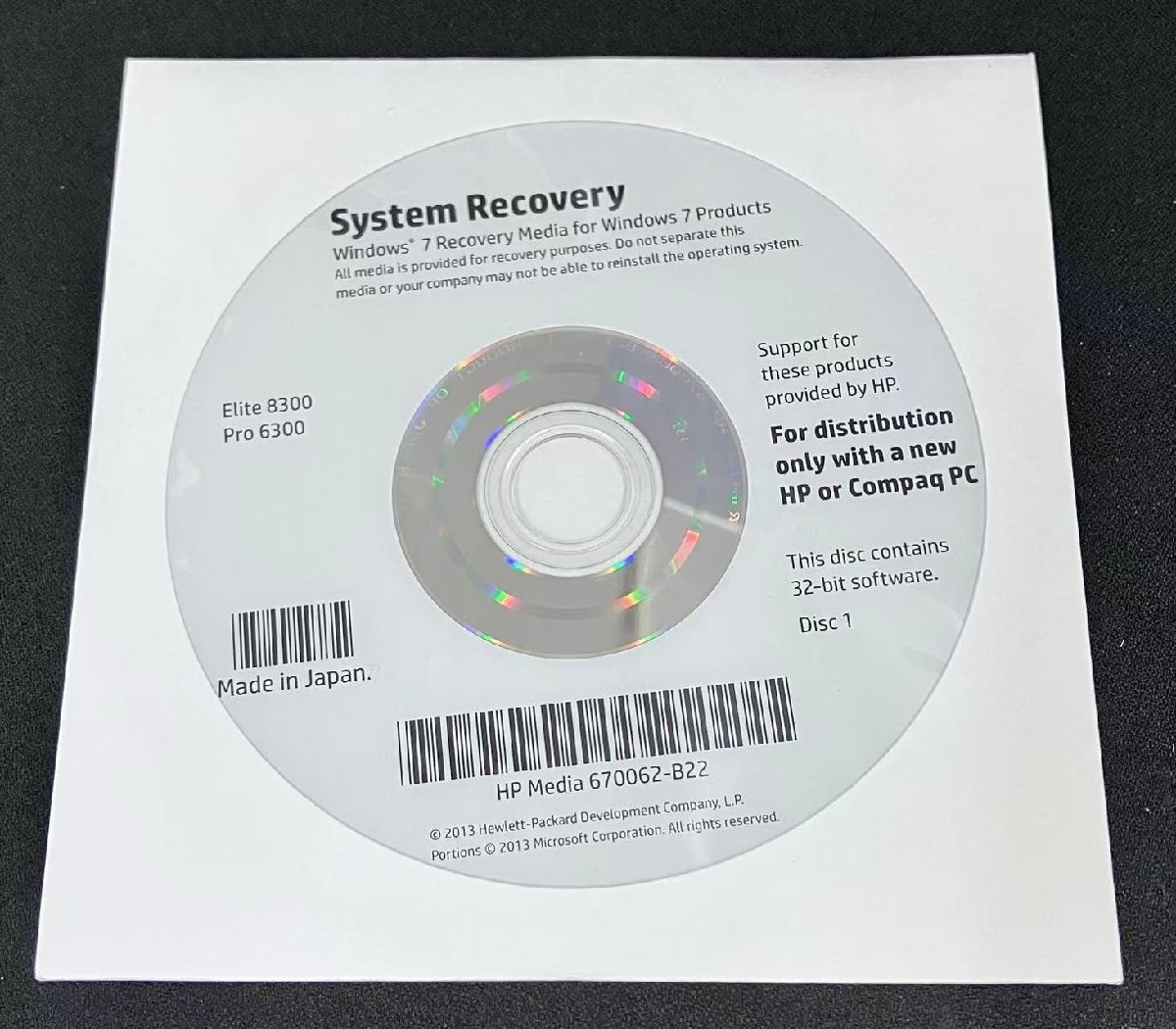 | 商品名 | HP システムリカバリーディスク Windows 7 32bit for Elite 8300 / Pro 6300 4枚組 |
