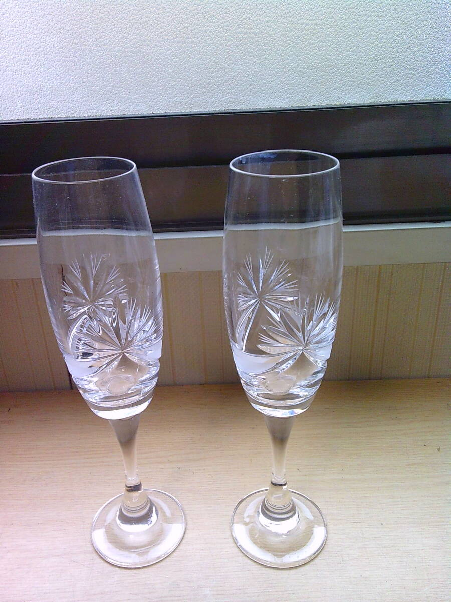 ■ く-696 切子 カットグラス 2個 未使用 ワイングラス ビールグラス ※単品)高22cm 幅5.5cm 口径4.3cm 総重量420g