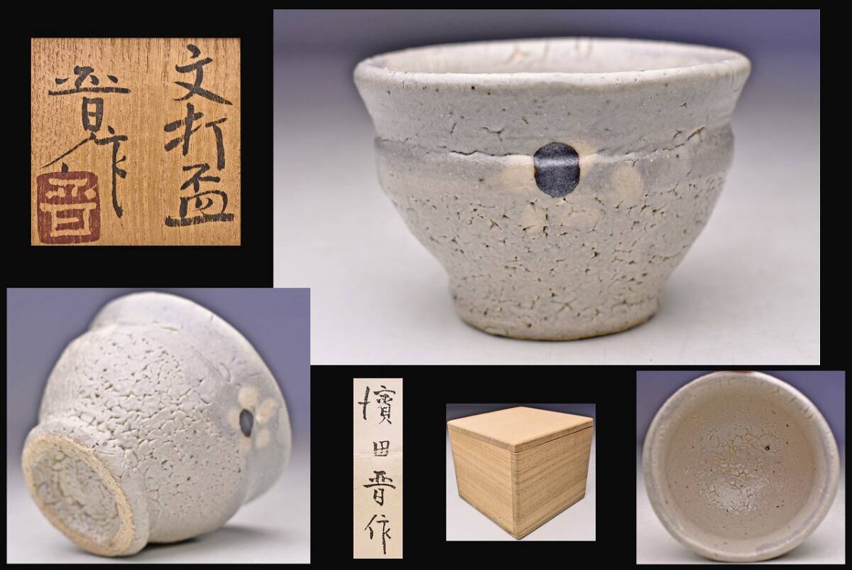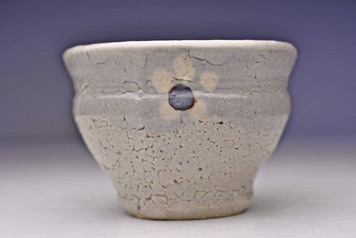 浜田晋作 ★ 文打 ぐい呑 ★ 共箱 栞 ★ 父: 人間国宝 浜田庄司 ★ 花文が愛らしく民芸陶らしい力強さが魅力の逸品 ★ 益子焼 ★