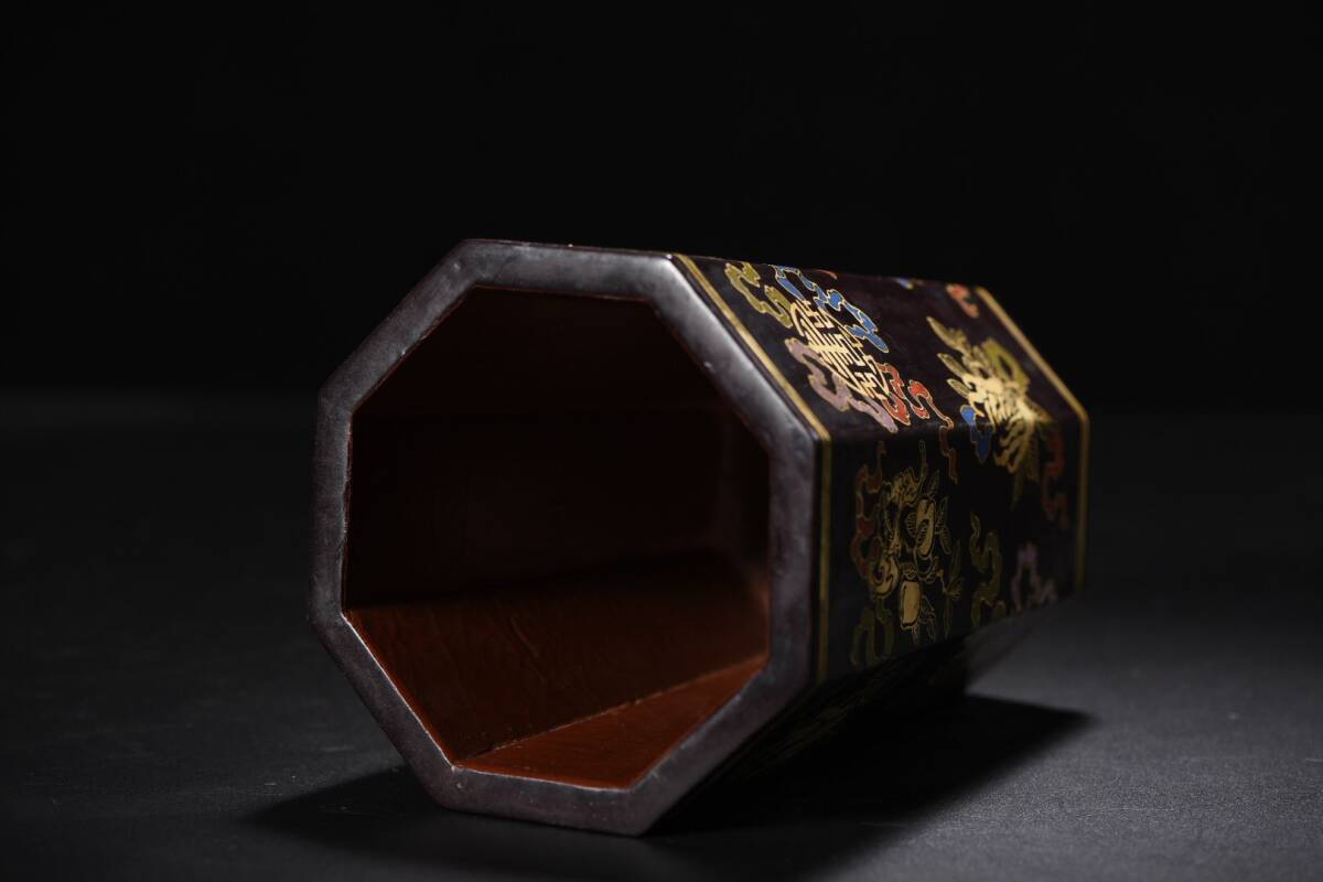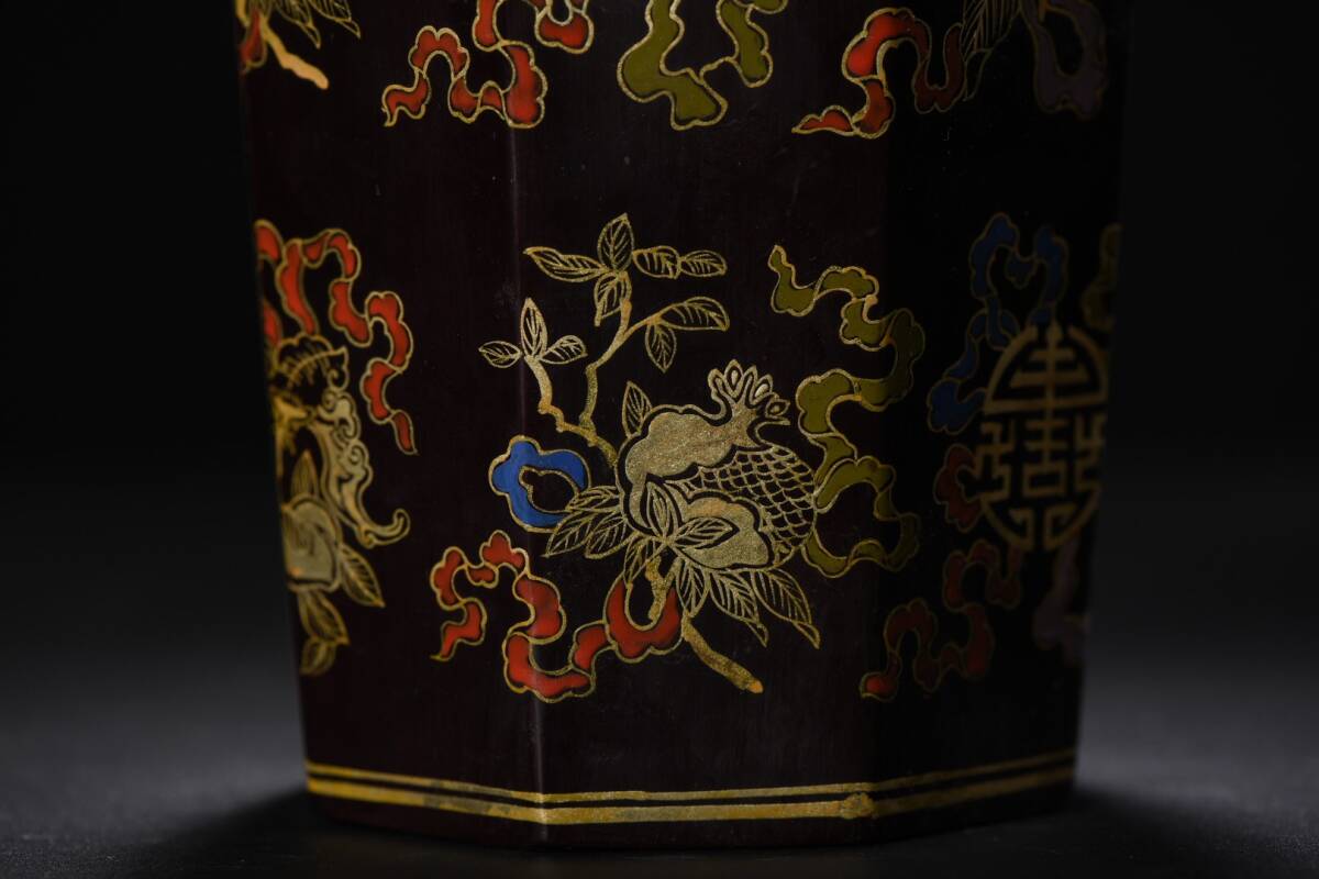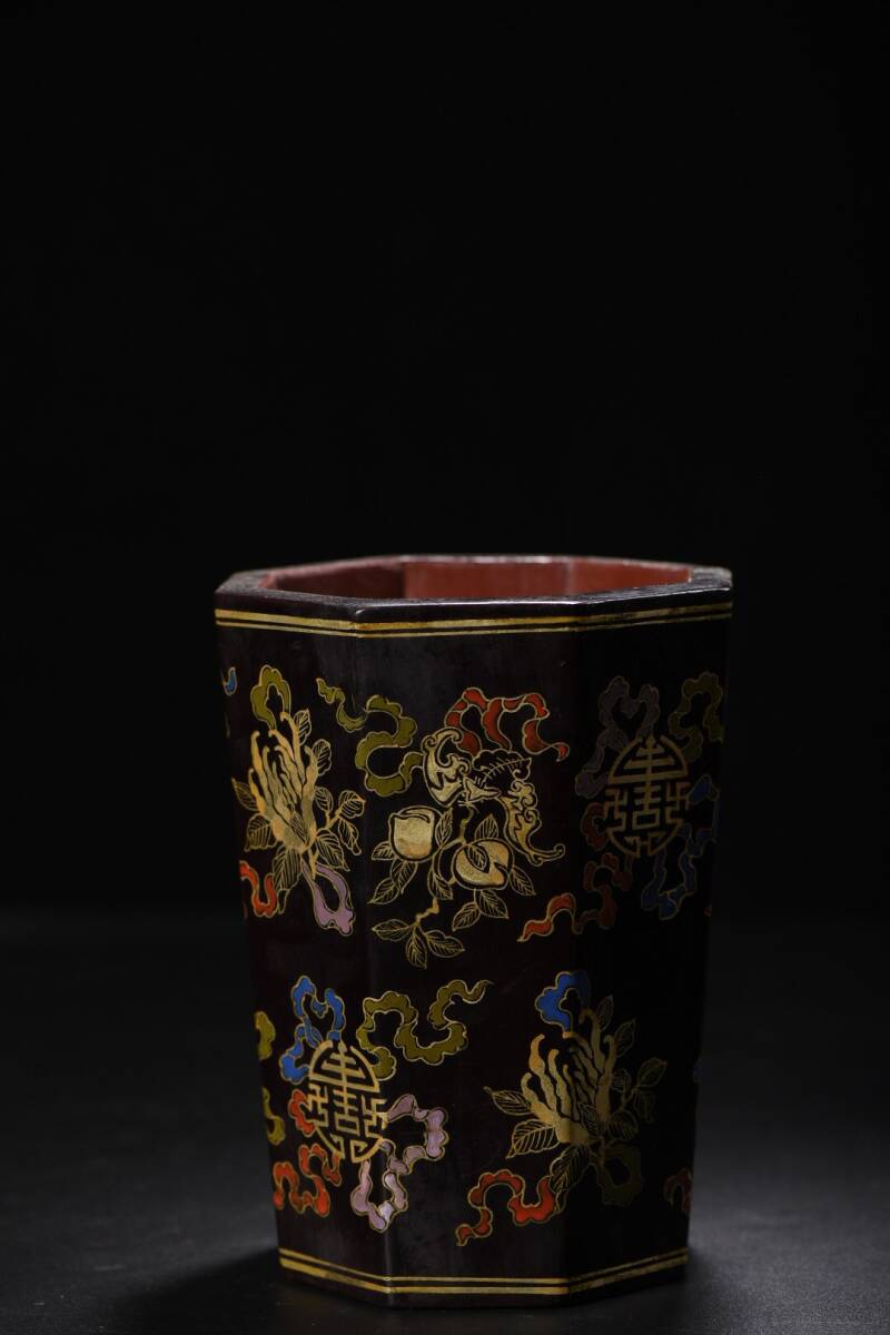 | 【蔵友館蔵品・木胎漆器彫・描真金・福寿百財紋・筆筒・置物・賞物】・希少珍品・置物・賞物・中国時代美術 |