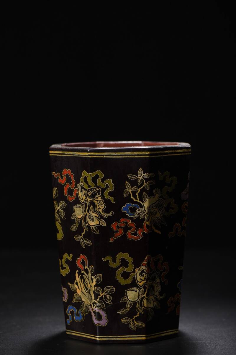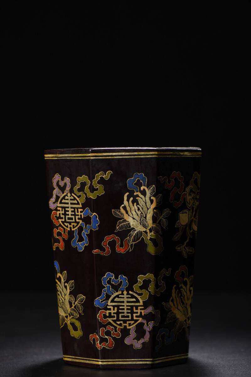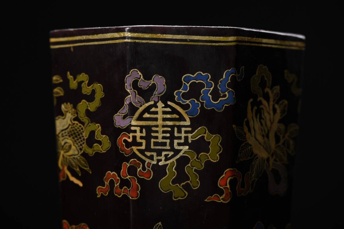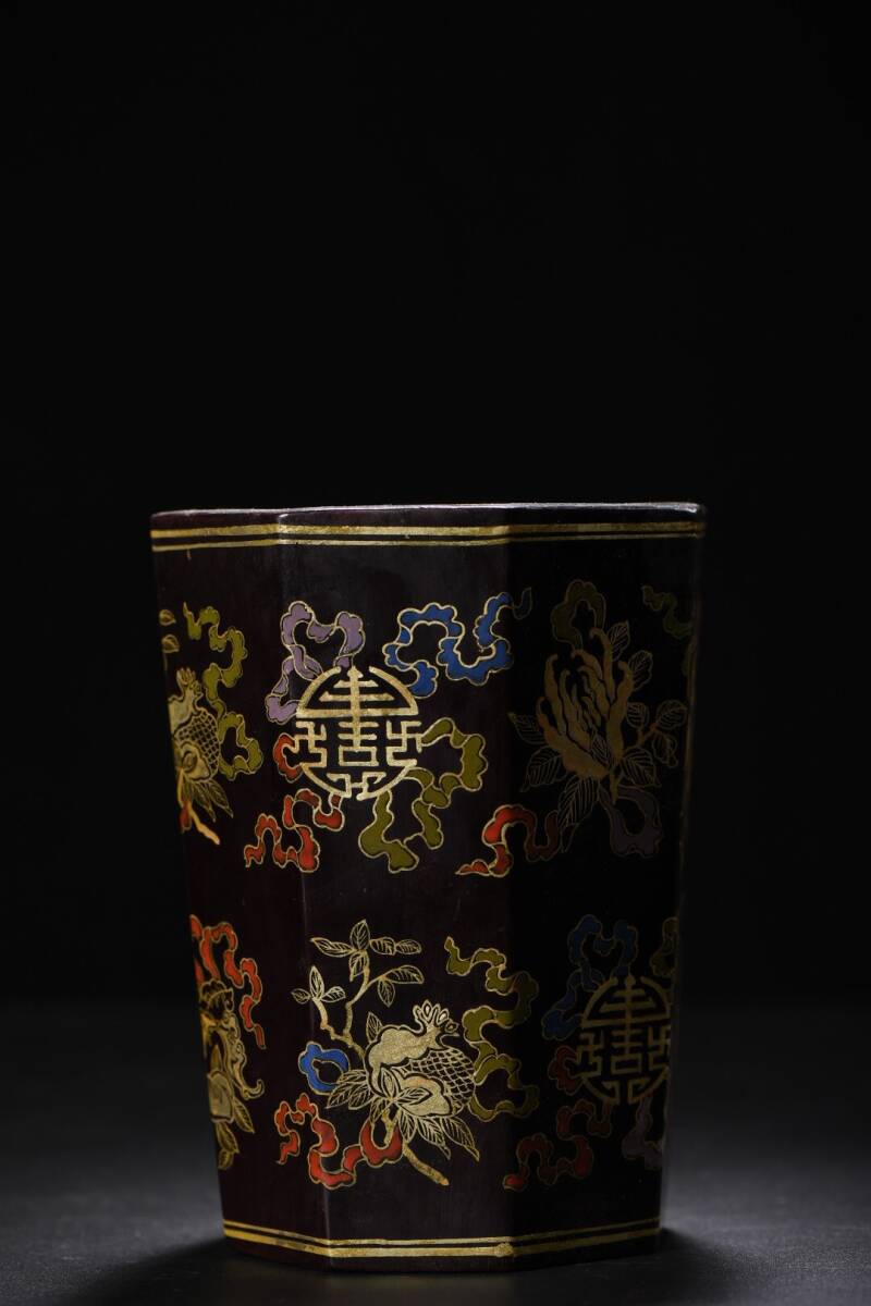 | 【蔵友館蔵品・木胎漆器彫・描真金・福寿百財紋・筆筒・置物・賞物】・希少珍品・置物・賞物・中国時代美術 |