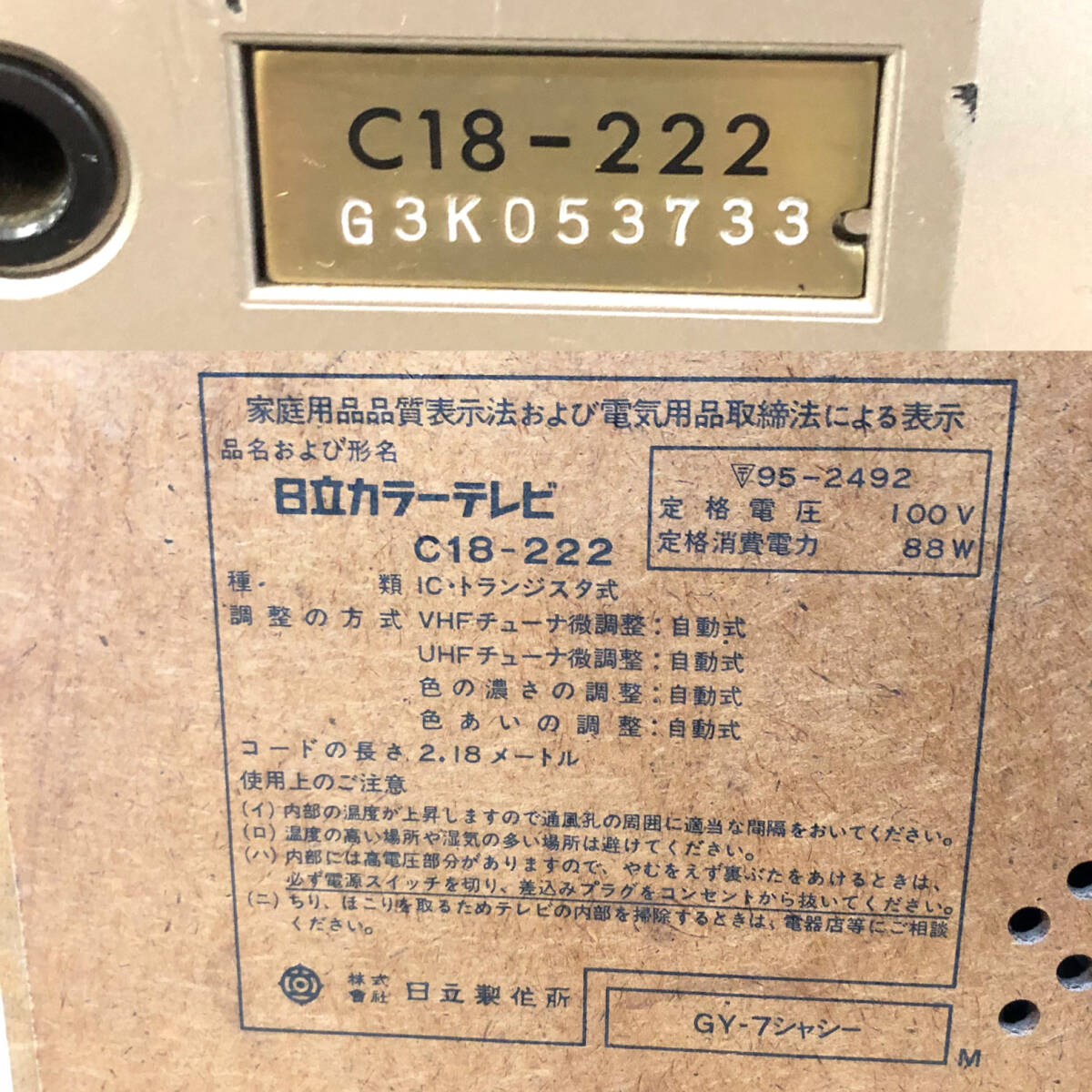| *【通電OK】HITACHI C18-222 ブラウン管テレビ カラーテレビ テレビ コレクション インテリア レトロ 当時物 日立 ジャンク |