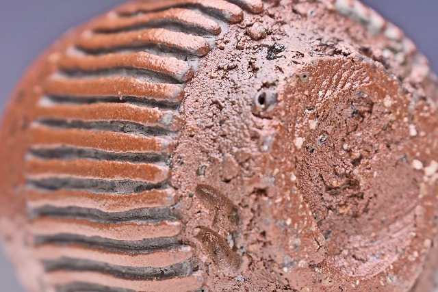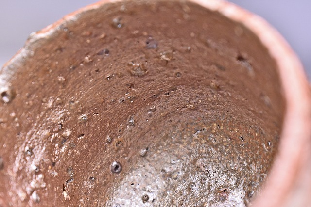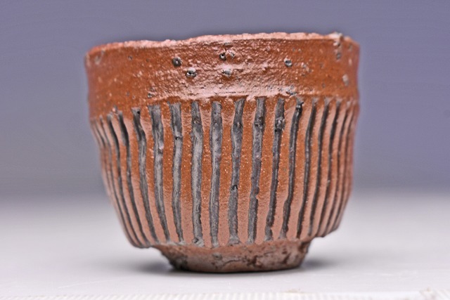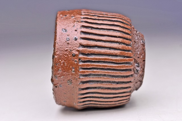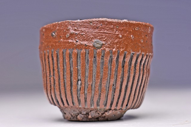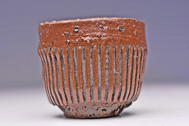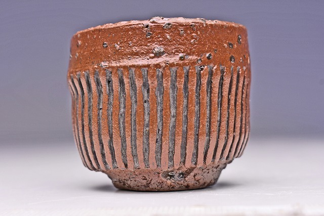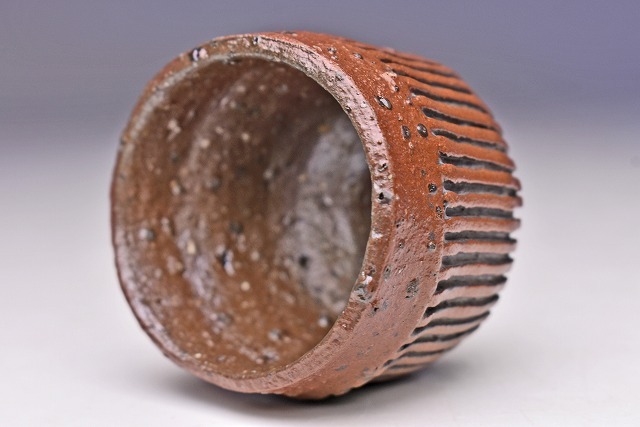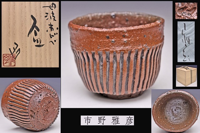 市野雅彦 ★ 丹波赤ドベぐい呑 ★ 共箱 共布 栞 ★ 上作 ★ 師:今井政之 ★ 父・初代 市野信水 ★ 立体的な縦縞模様 ★ 味わい深い逸品