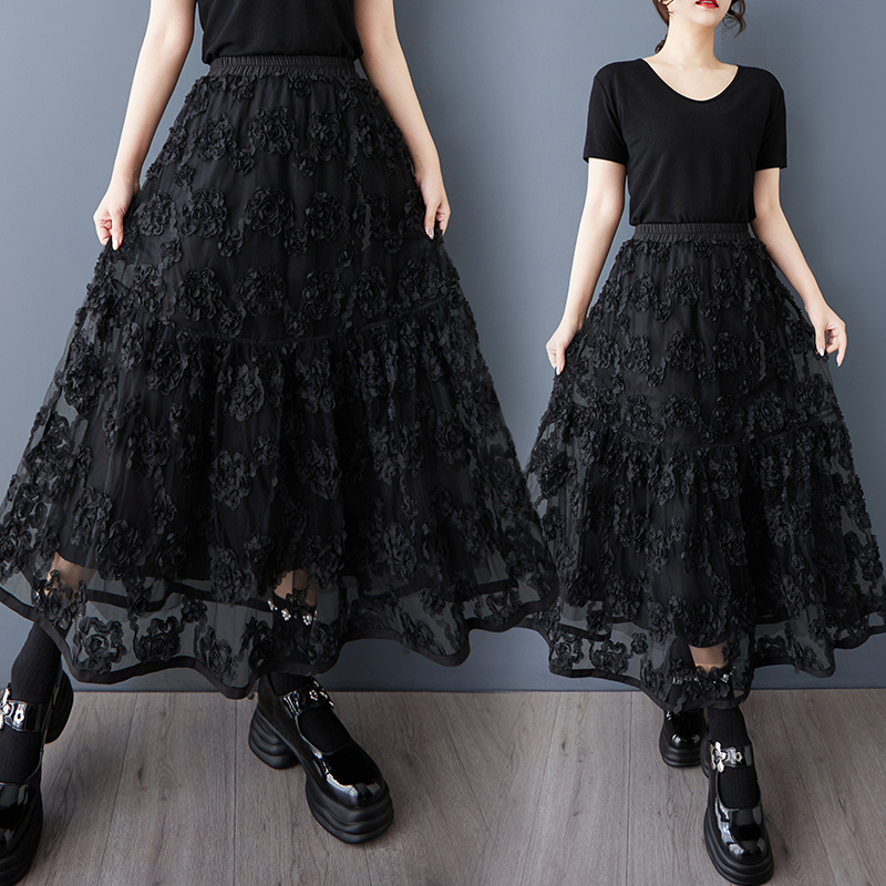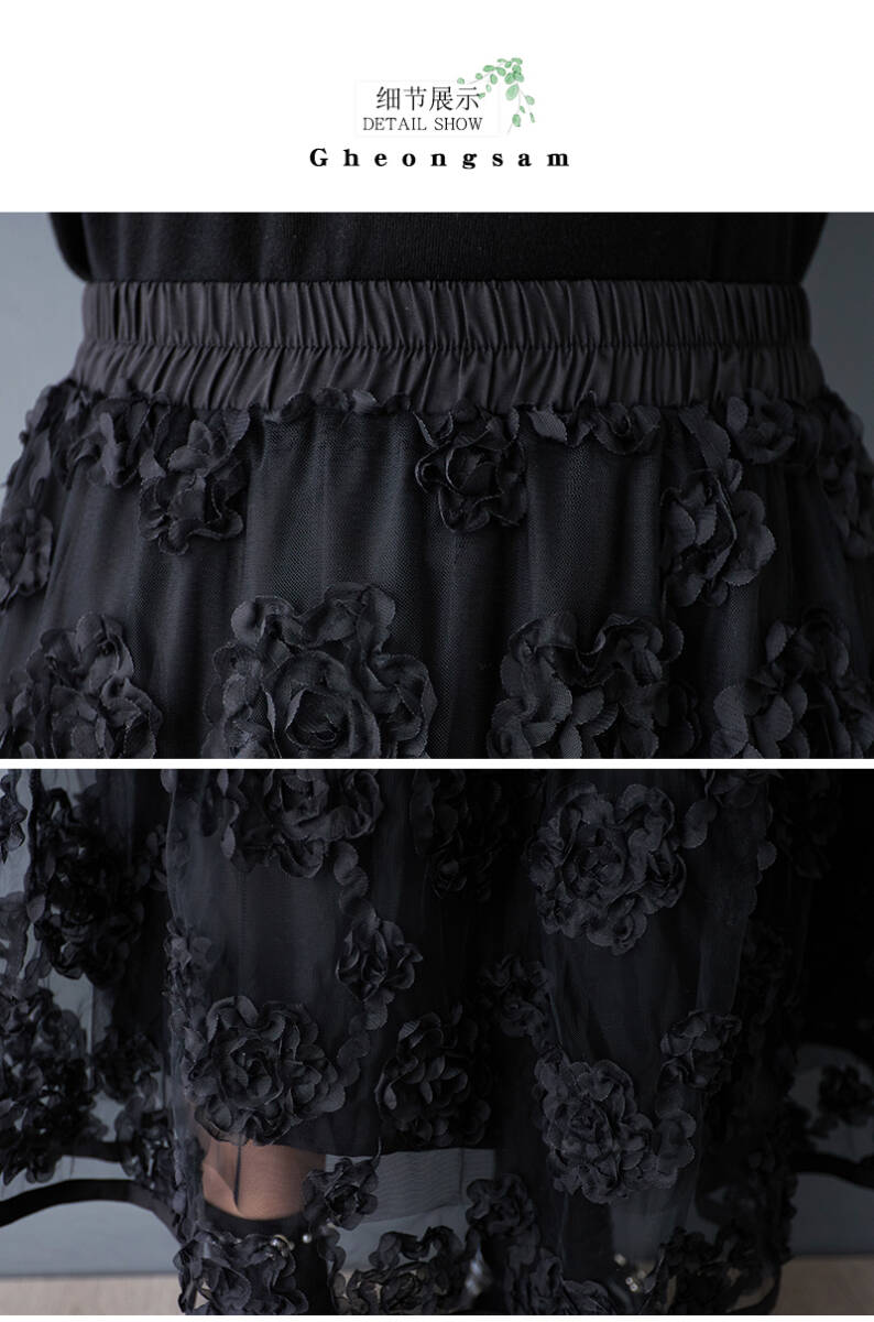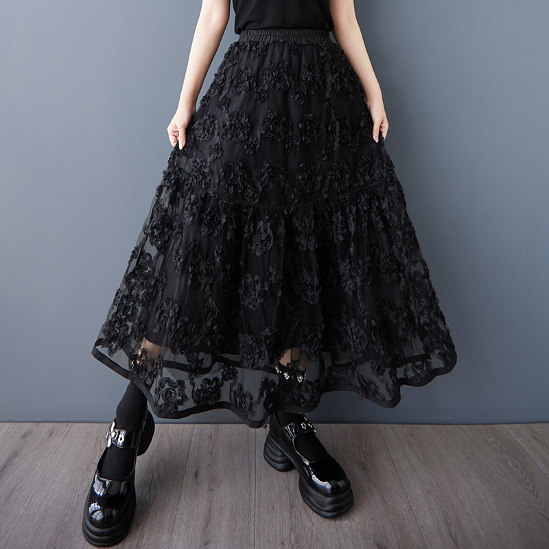 「同梱1万円送料無料」夏*新作*カジュアル*20304050代*ウエストゴム*立体花*ロングフレアスカート