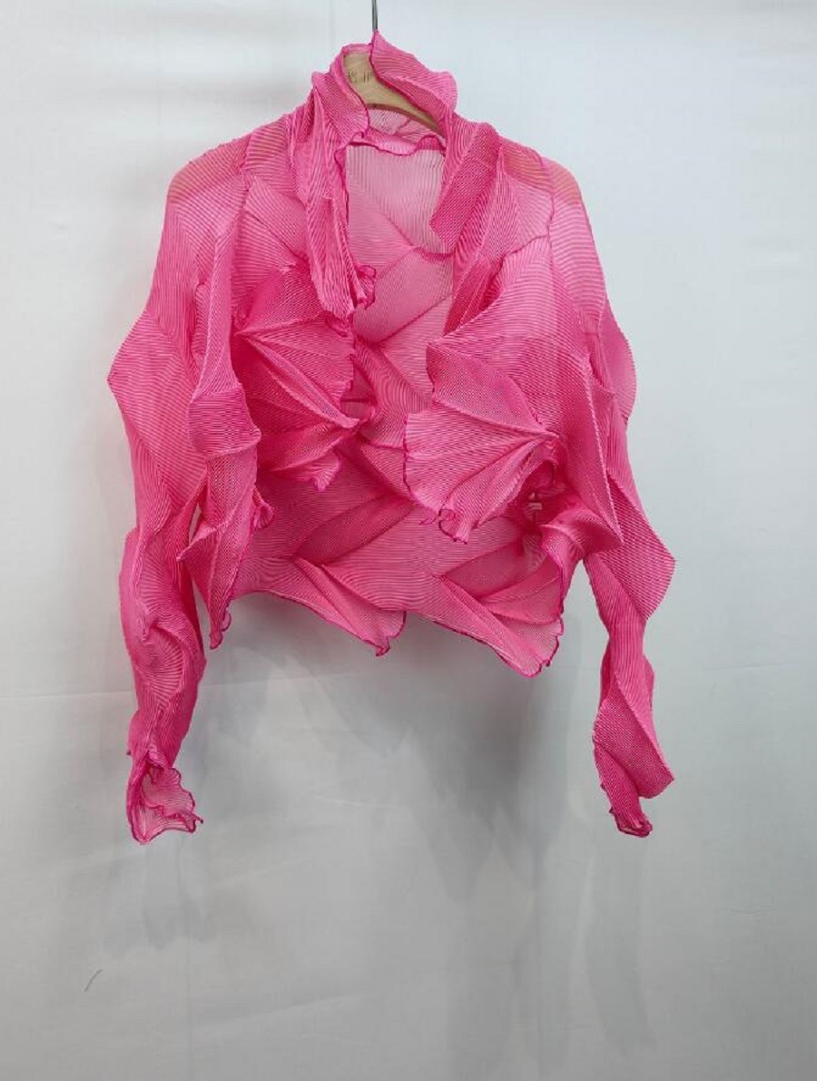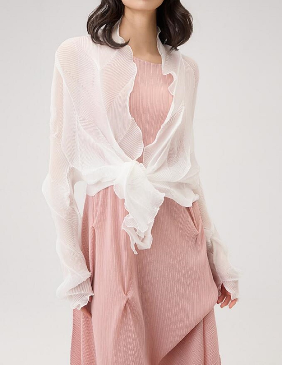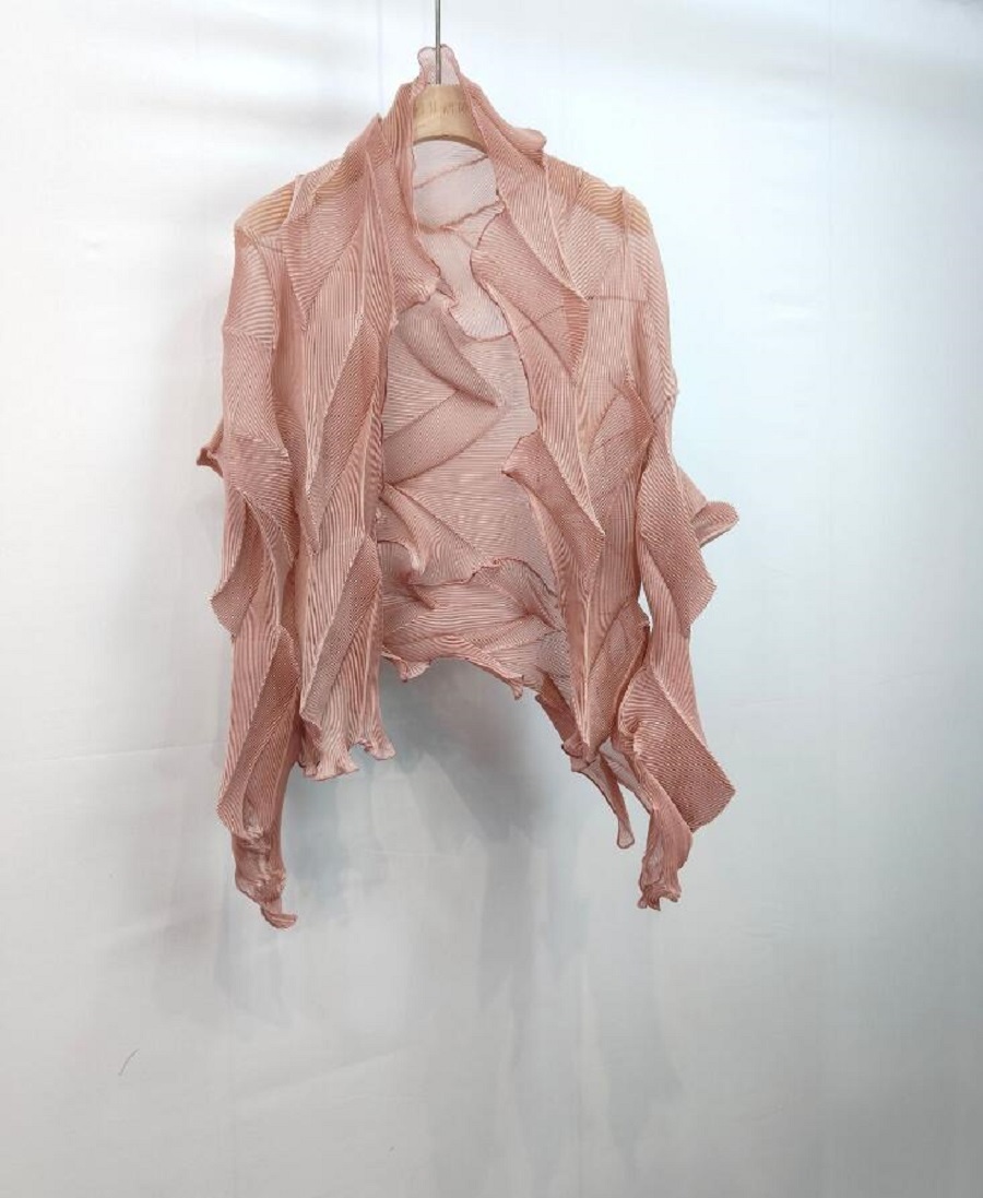 「同梱1万円送料無料」レディーストップスプリーツpleatsカーディガンストーン肌触り弾力ドレープ性がいい日焼 け止めピンク色