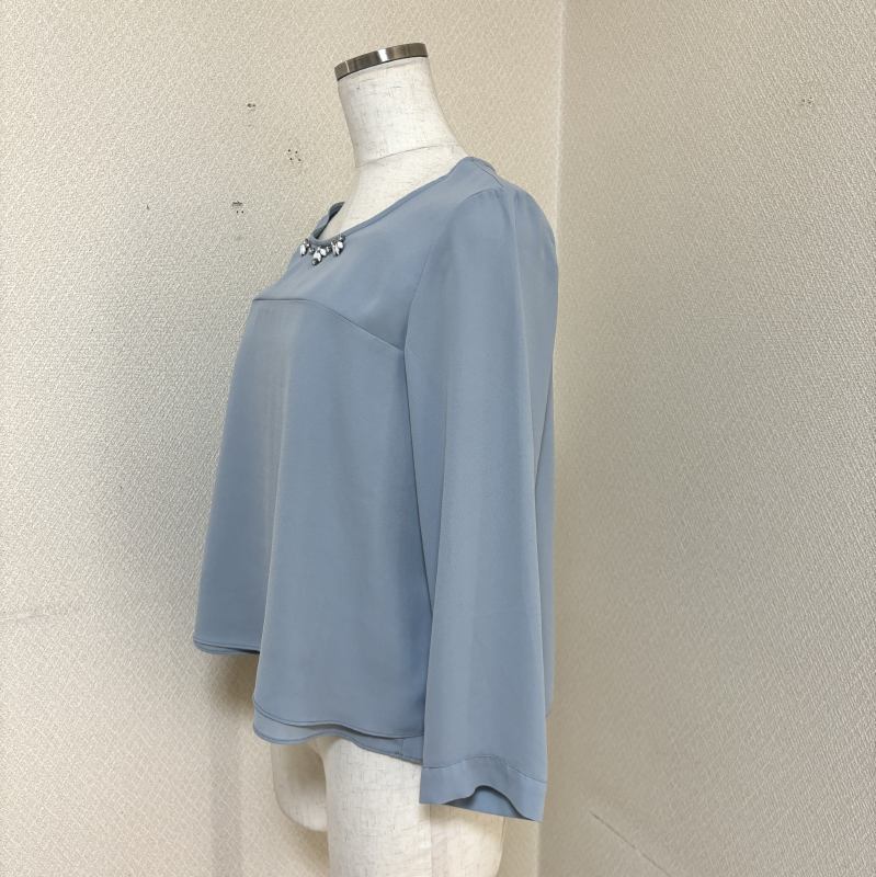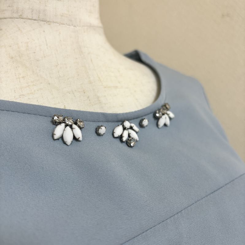 襟ぐりにはホワイトのビジュー付き。
