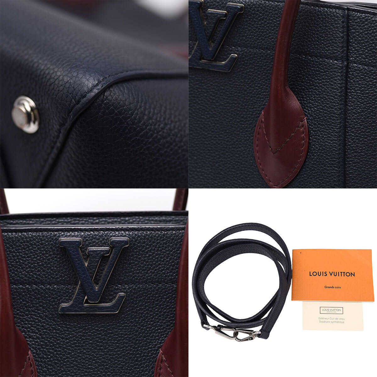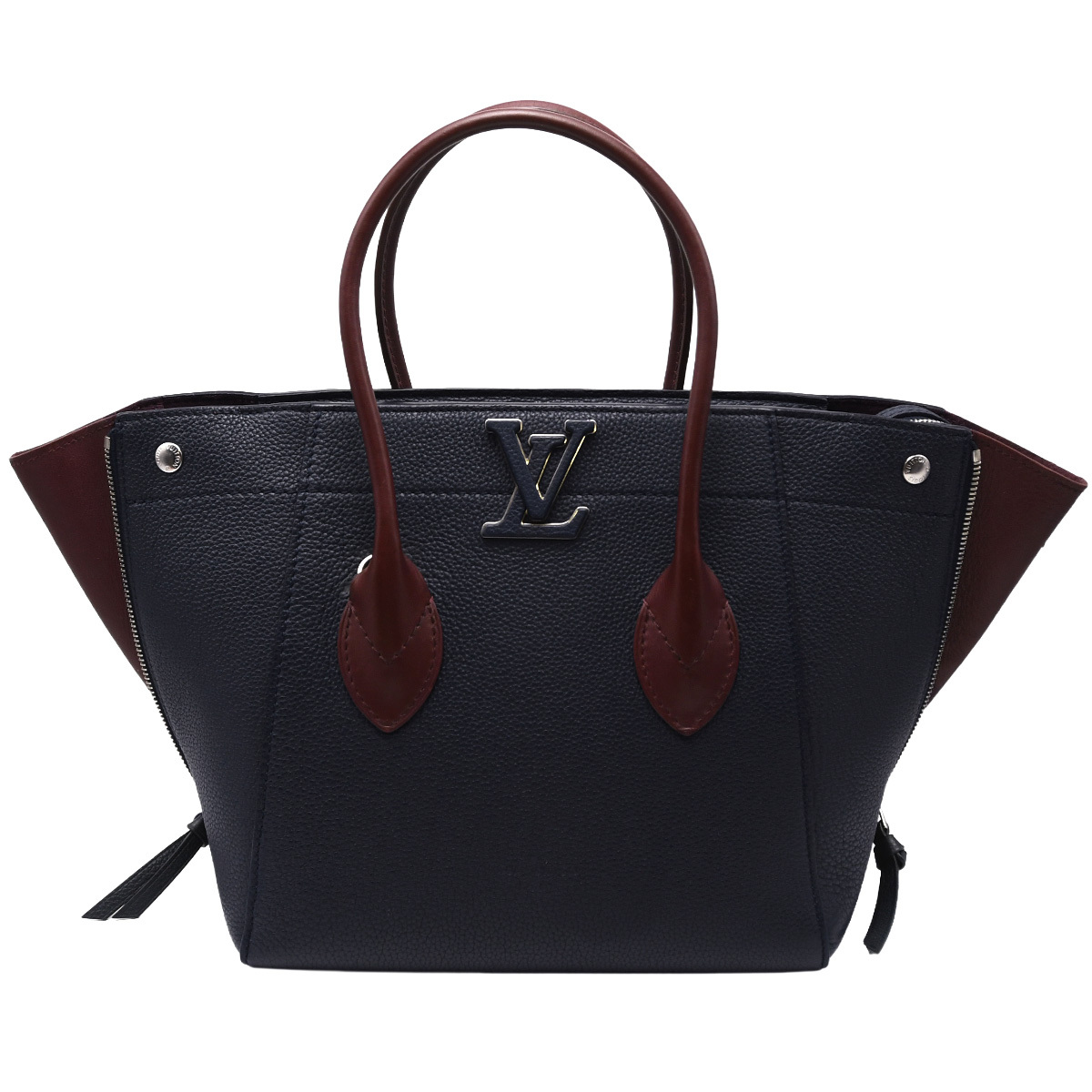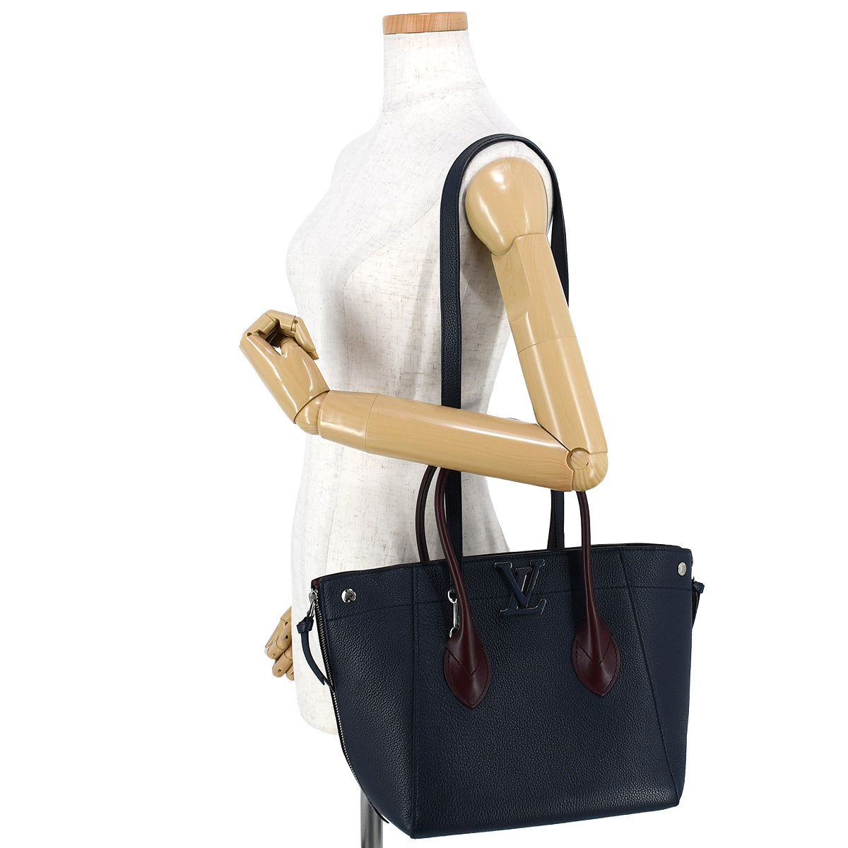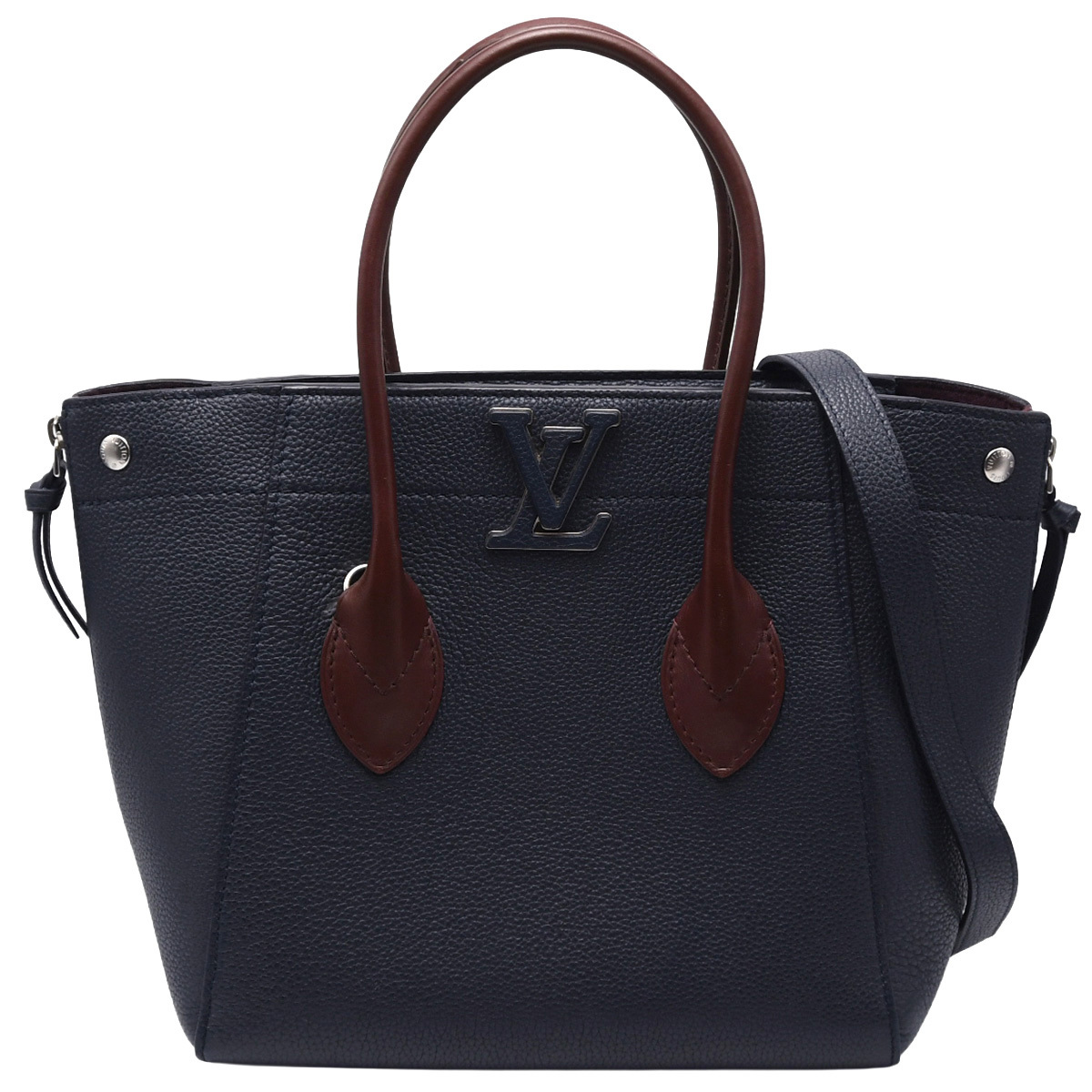 軽微なレザースレ・シワ・金具小傷あり。 その他特筆目立つダメージはなく、使用感の少ない大変綺麗な状態です。 ルイヴィトンの2wayハンドバッグ「フリーダム」が入荷しました。 上質なトリヨンレザーに深みのあるネイビーとボルドカラーのバイカラーがおしゃれな印象のアイテムです。 フロントにはLVロゴ金具が施され、控えめながらも高級感のある逸品です。 バッグサイドのファスナーを開けると収納容量を増やすことができ、十分な収納力があるため、お出掛けや旅行などデイリー使いにはもちろんのこと、ビジネスシーンまで幅広く活躍いただけます。 |
