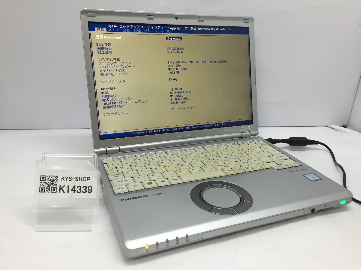 ジャンク/ Panasonic CF-SZ6RDYVS Intel Core i5-7300U メモリ8.19GB ストレージ無し 【K14339】