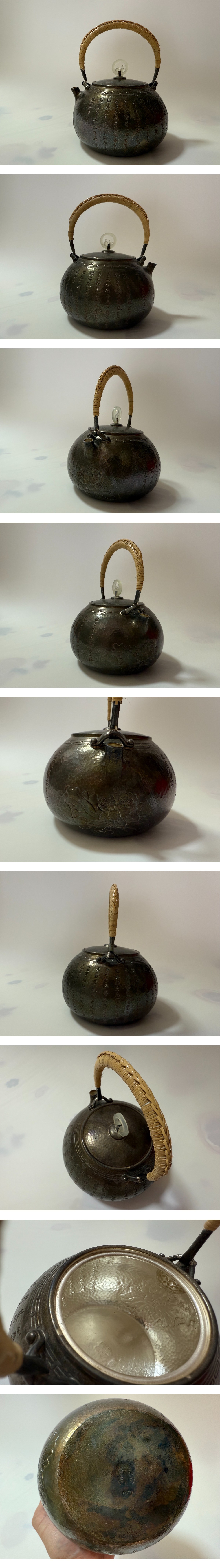 時代 純銀製 一東斎造 般若心経・蓮花彫刻 湯沸 工芸品 古美術品 銀瓶 煎茶道具