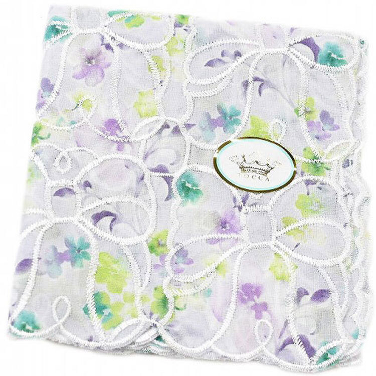 | 商品説明 | 女性 婦人 大判ハンカチ 1枚 日本製 本体:綿100 刺繍糸上糸:レーヨン100 刺繍糸下糸:綿100 サイズ 約56×56 (cm) 色:パープル × グリーン ◆メール便 OK |