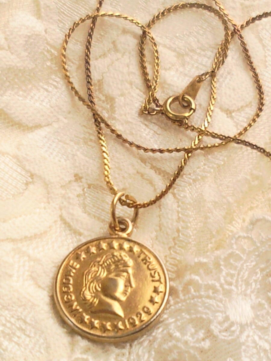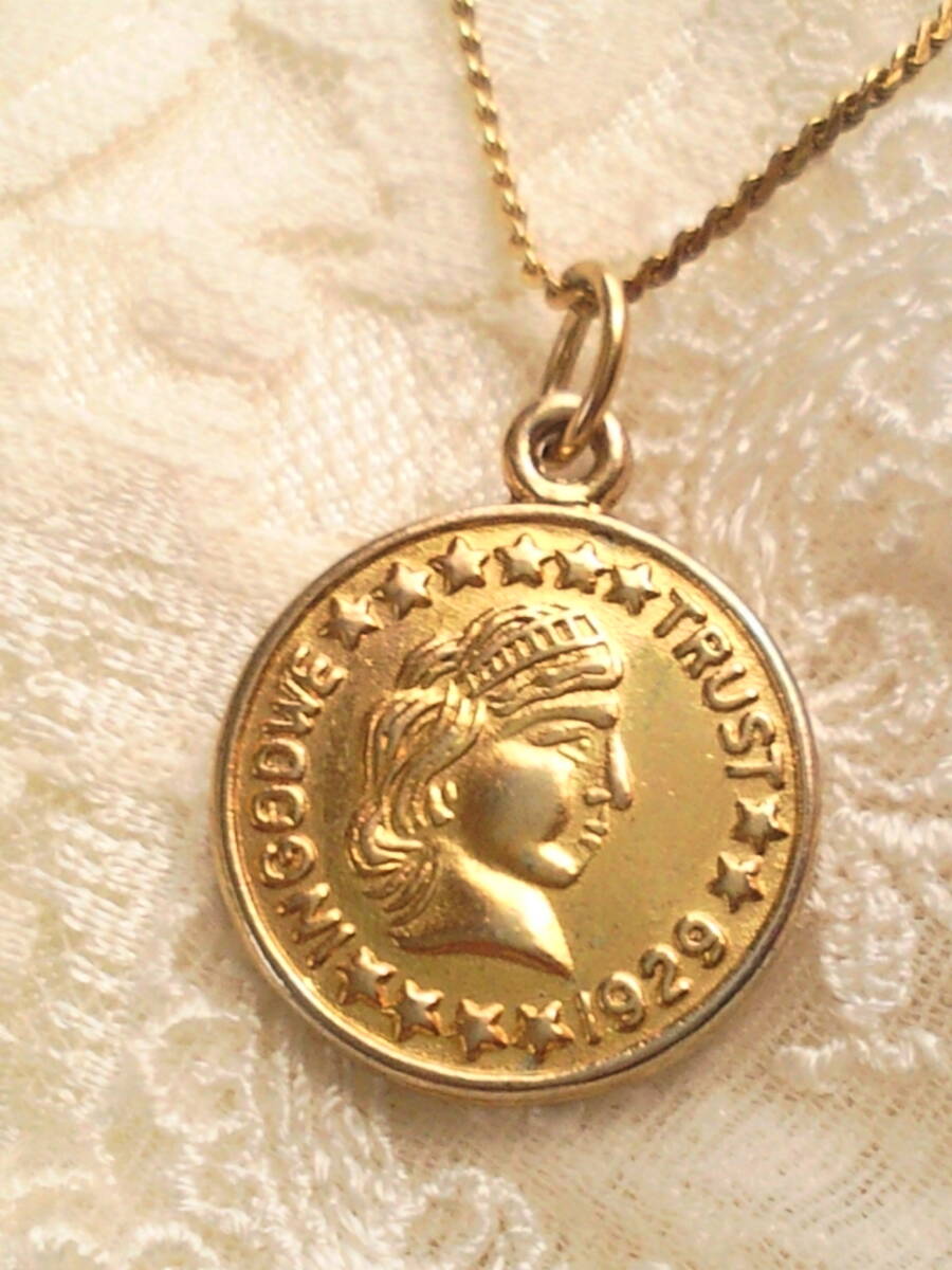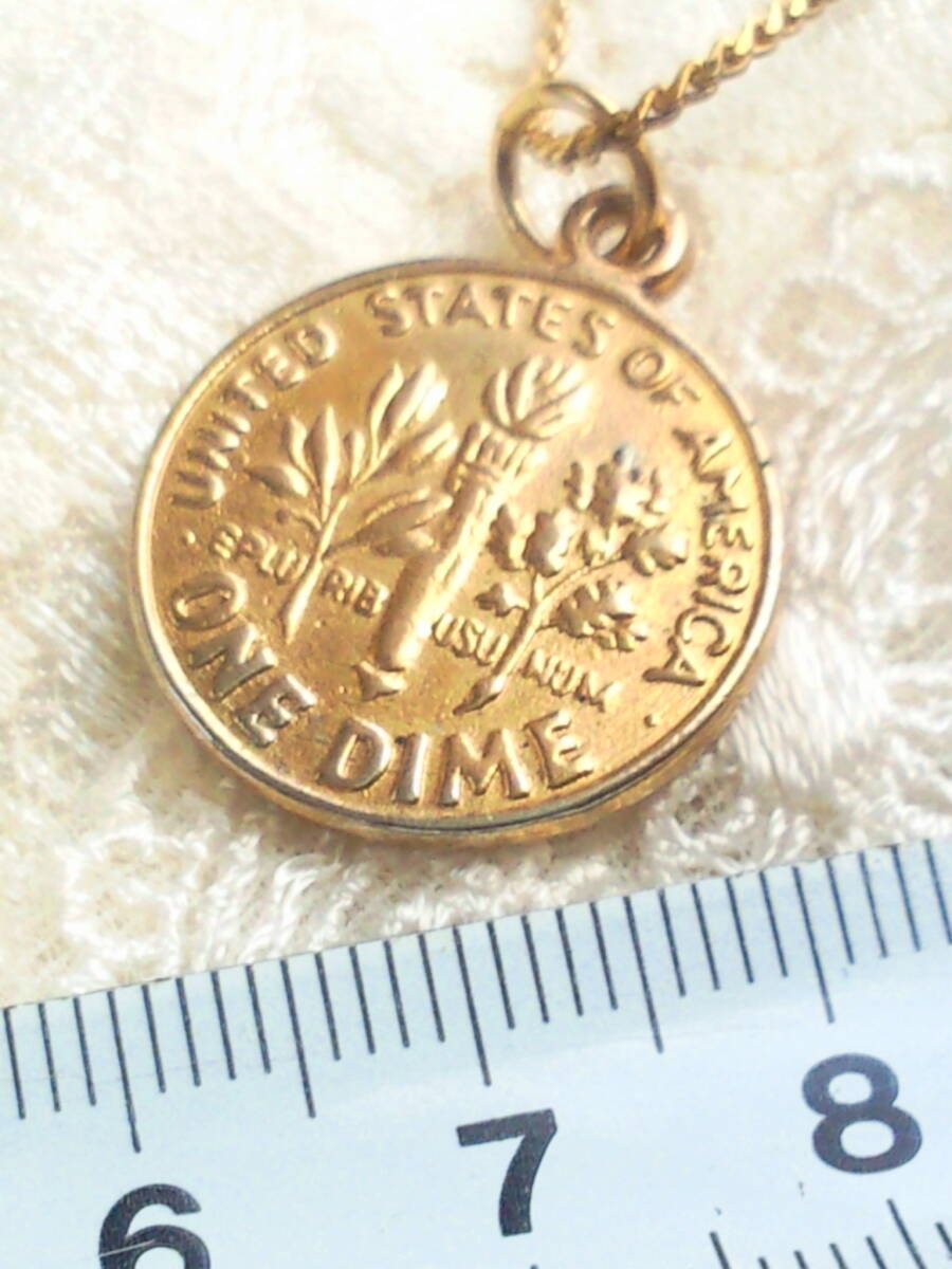 コインネックレス◆USA製コインペンダント◆ONE DIME 1929 レプリカコイン 金貨風ヴィンテージ男女兼用品アンティークジュエリー◆送料無料