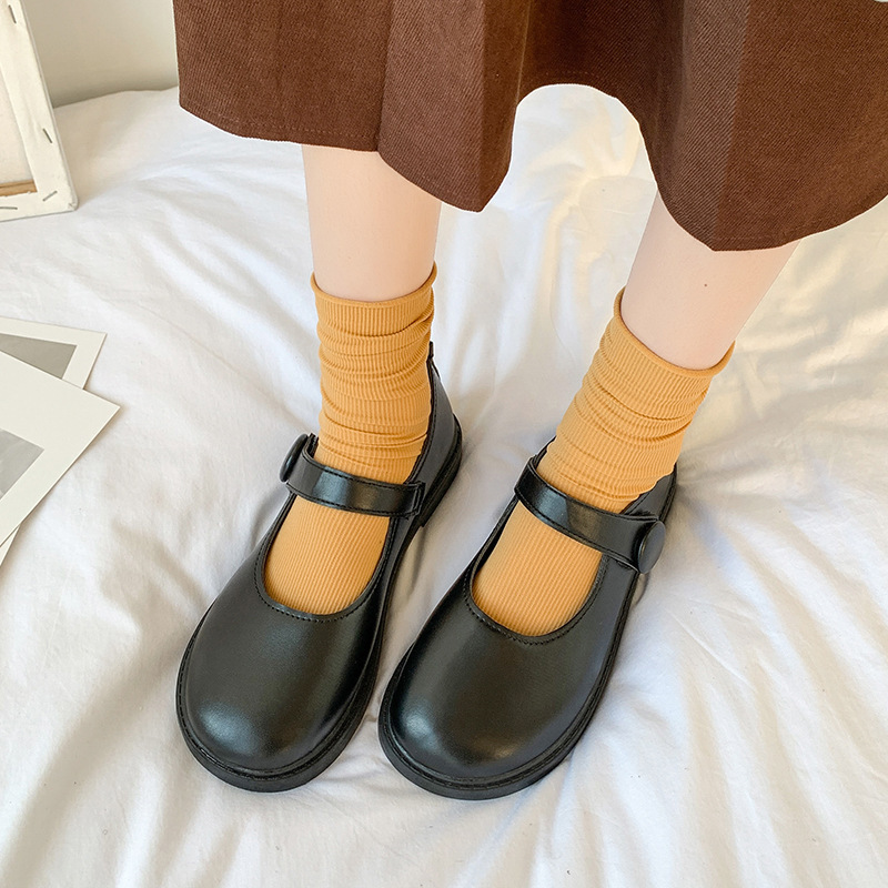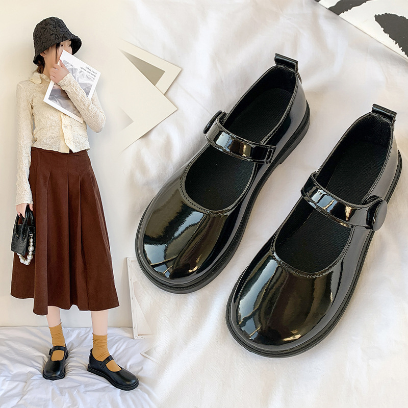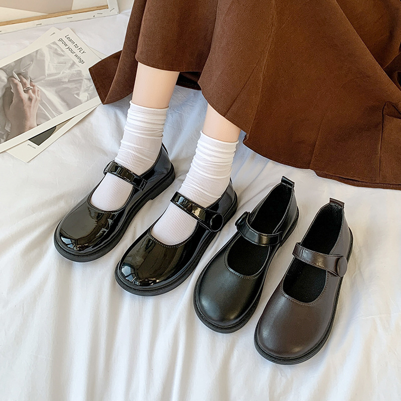 新品未使用 マジックテープ メリージェーン靴 シングルシューズ 小さな革靴 【38】24cm ブラック