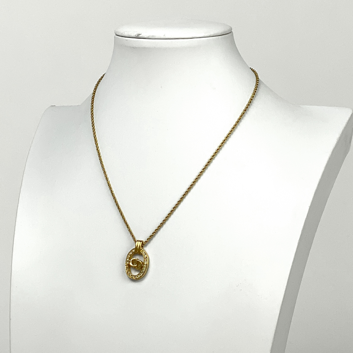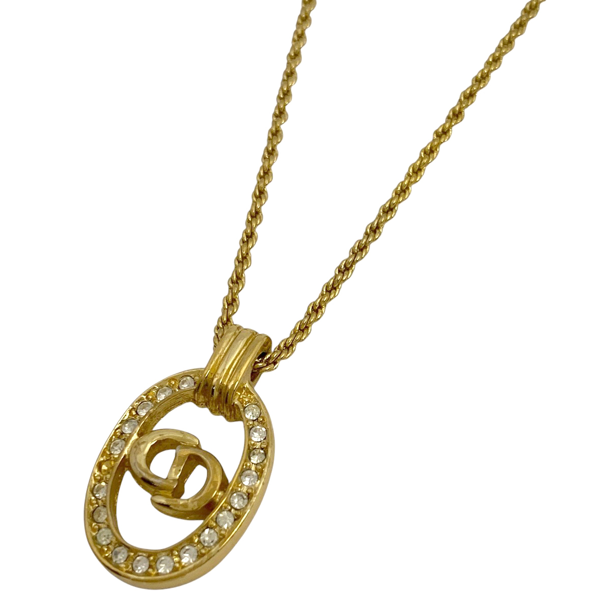 | クリスチャンディオール Christian Dior ロゴ ラインストーン ネックレス CD オーバル ネックレス GP ラインストーン ゴールド レディース 【中古】 |