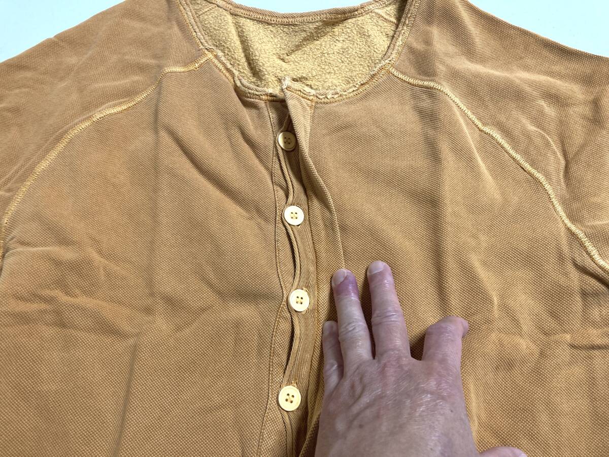 実寸サイズ | 総丈(背中側中央の一番上からスソまで)およそ66センチ、身幅(ワキの下辺り)およそ56センチ、裄丈(首の後ろの中央から袖先までを直線で計測)およそ45.5センチ、袖丈(ワキの下のステッチから袖の先端まで)およそ9.5センチ。尚、肩幅はラグラン袖のため計測できませんでした。(たるみを無くす為軽く引っ張る感じで計測しています。多少の計測誤差はご容赦願います。) |