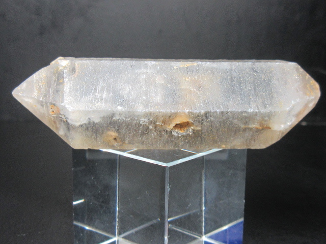 ご覧のように主に両端がポイント(ダブルターミネーター)となっており、内部に黒い内包物(炭素やマンガンと言われる)や太古の水を湛えていることが多い、大変に魅力的な水晶です。
