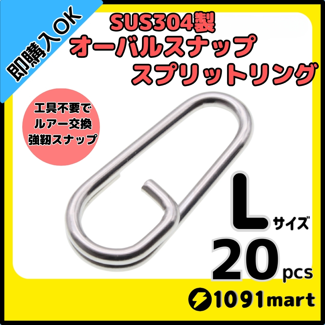 【送料無料】SUS304 ステンレス製 オーバルスナップスプリットリング Lサイズ 20個セット ジギング ブリ ヒラマサ キハダ キャスティング 工具不要で楽々ルアー交換