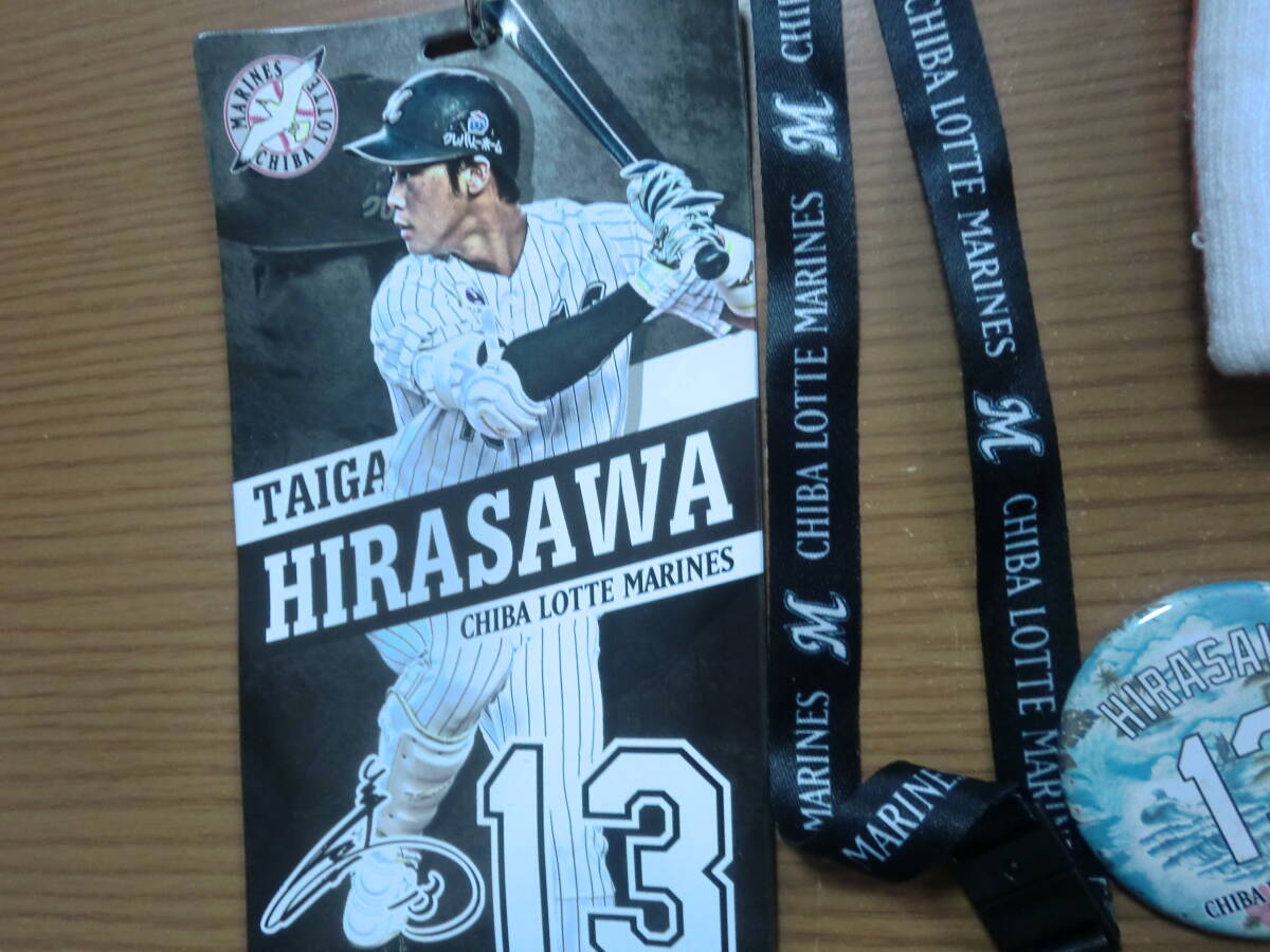 ロッテ マリーンズ 平沢大河 チケットホルダー リストバンド キーチェーン 缶バッジセットです。